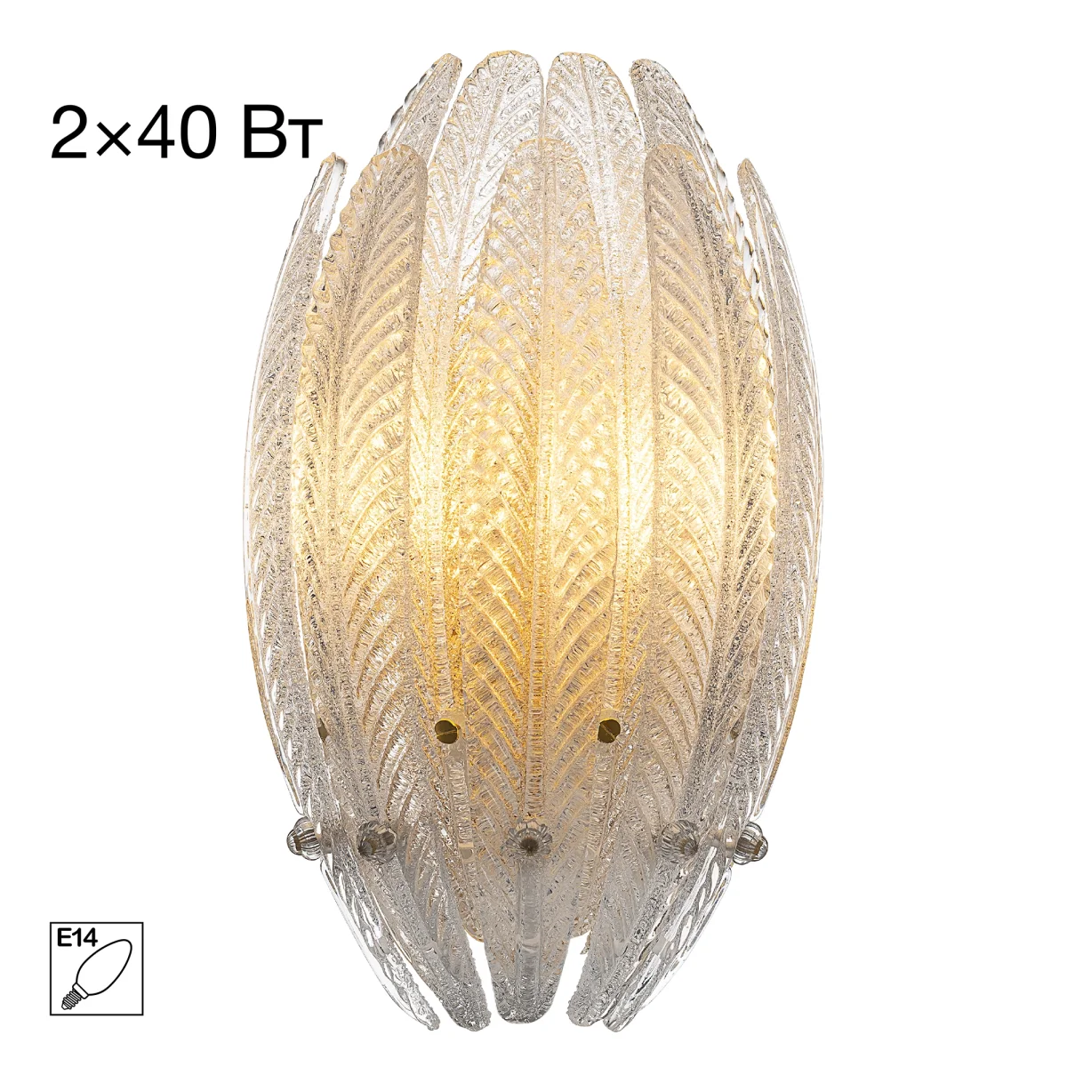 бра Citilux DELTORO CL327320 — это изысканное переосмысление арт-деко (ар-деко) в современном светодизайне. Здесь каждая деталь работает на единую эстетическую идею. Металлический каркас имеет благородный золотой оттенок, рассеивателем служат несколько рядов полупрозрачных стеклянных текстурных элементов в форме продолговатых листьев. Для светильника подойдут две лампочки с цоколем Е14, максимально допустимая мощность для лампы накаливания — 40Вт, светодиодные могут быть более яркие.