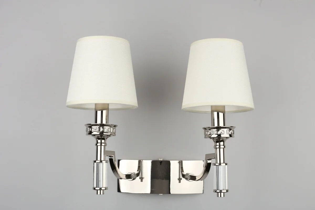 Бра Dimaro OML-87801-02 Omnilux в стиле Классика, 2 лампы E14 мощностью 40Вт, цвет плафона - Бежевый, материал плафона - Текстиль, цвет артматуры - Хром, площадь освещения до 4 кв.м. Высота: макс - мм, Ширина: мм . Степень защиты: IP 20 . Подходит для установки в прихожей, гостиной или спальне.