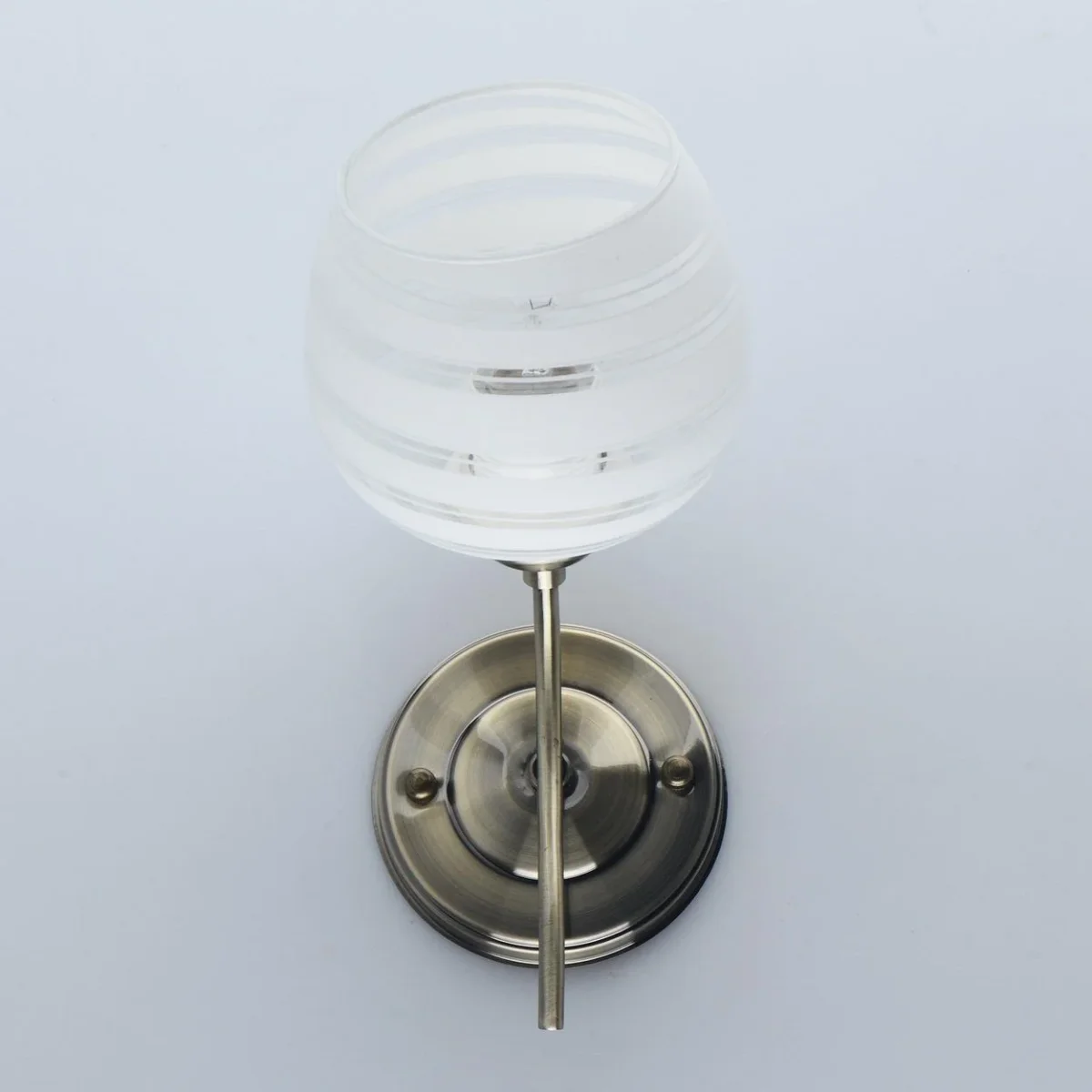 Основание/металл/античная латунь. Плафон/стекло/ белый, прозрачный орнамент.