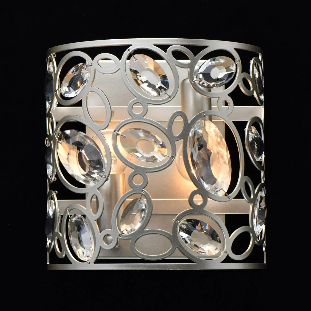 Основание - металл/перламутровое серебро. Декор - прозрачный хрусталь