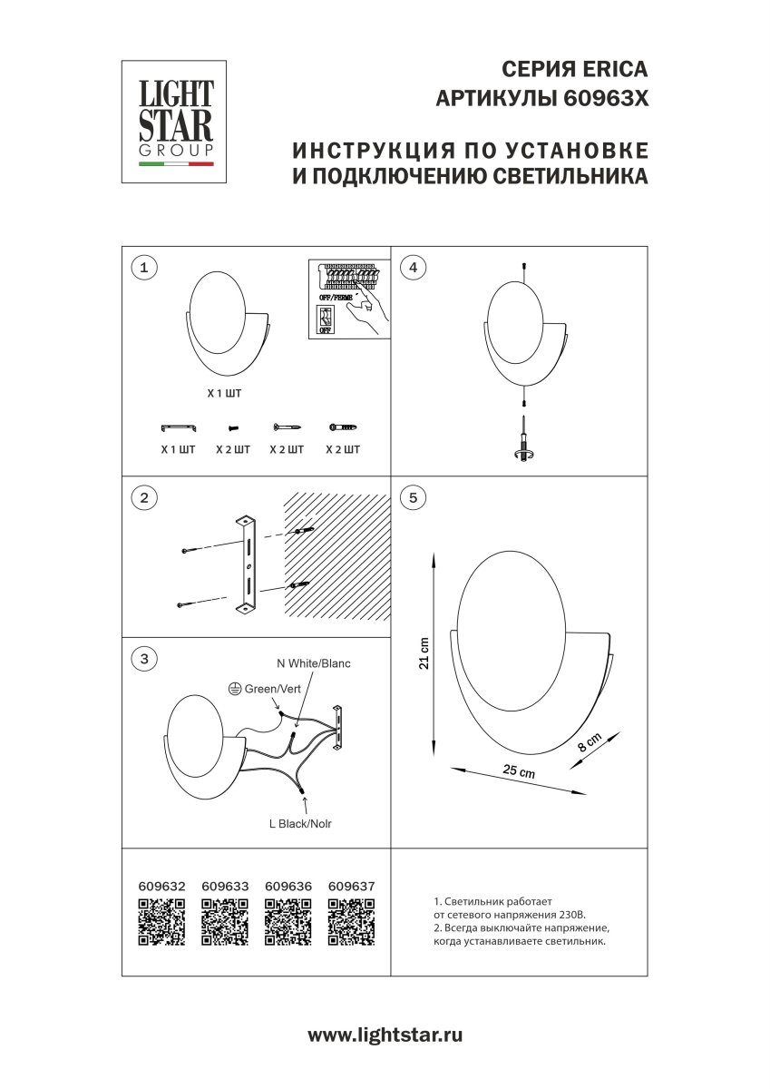 Бра LED Erica 609637 Lightstar шар купить с доставкой по Москве и России в интернет магазине Уютный-Свет.рф