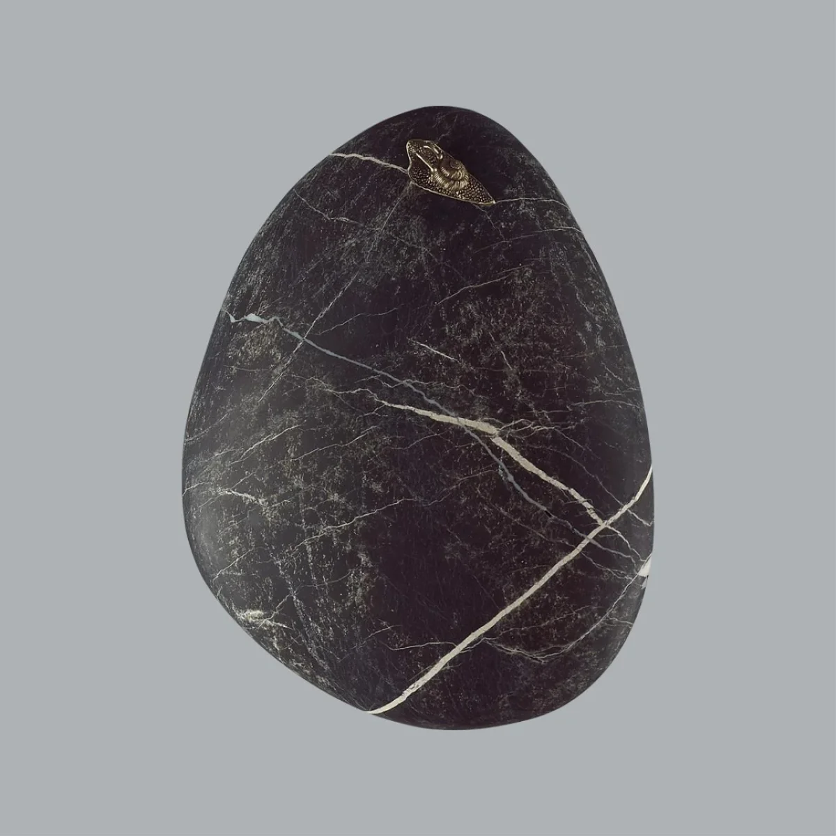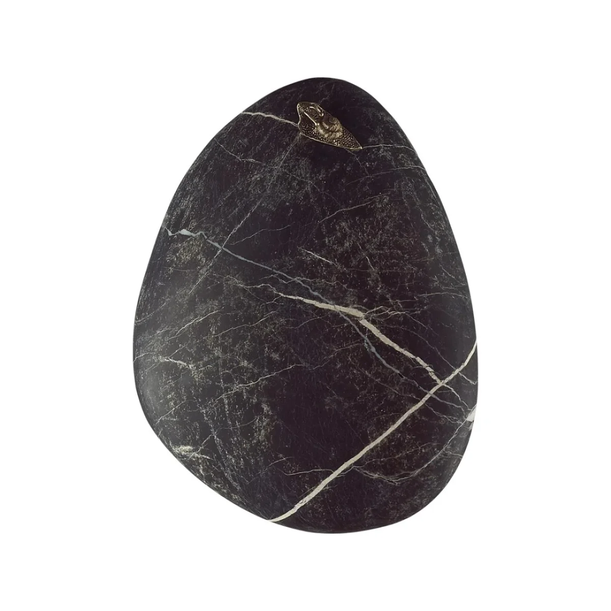 В светильниках Valley, выполненных в природной форме, используется мрамор Bidasar Green/Rain Forest, оттенки которого могут варьироваться от темно-зеленого до светлого с прожилками от белого цвета до коричневого. В комплект входит съемный декорна магните в виде улитки из настоящей латуни.