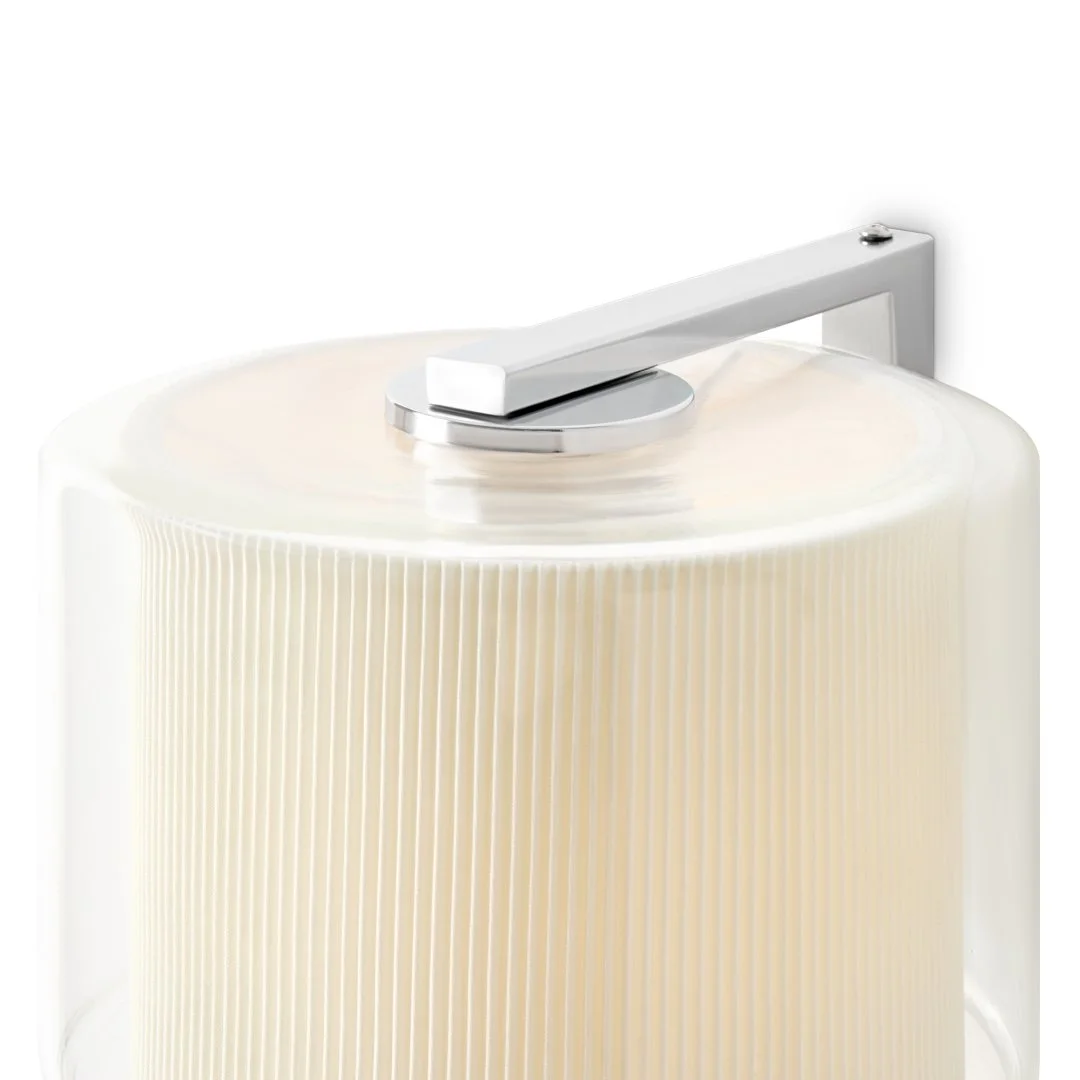 Сочетание стекла и тканевой плиссировки для мягкого рассеянного света. Лампы E27 (в комлекте). Особенность плафонов - их многослойность. В серии представлены подвесной, потолочные и настенный светильники.