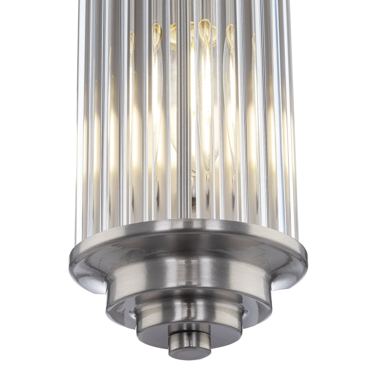Каркас светильника — металлический, модного оттенка матовый хром. Полуцилиндрический плафон сформирован из прозрачных стеклянных палочек. Источником света служат две лампочки с цоколем Е14 (не входят в комплект), максимальная мощность для ламп накаливания — 40Вт. Тип крепления светильника — планка. Настенный светильник Ситилюкс Вердон CL448011 станет отличным дополнением и классического интерьера, и более модернистской обстановки.