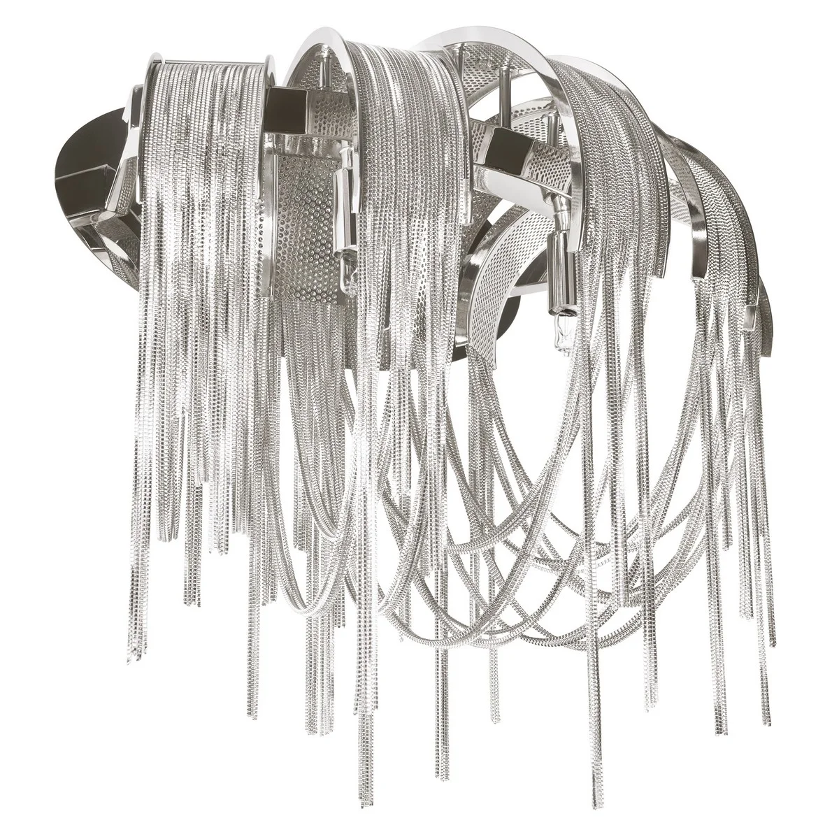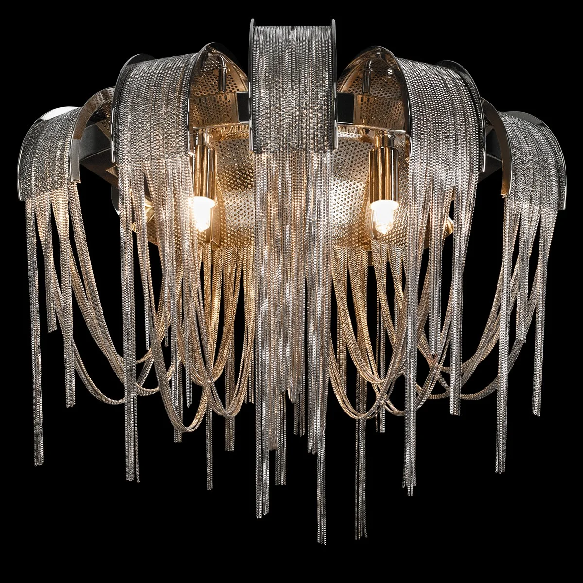 Коллекция Volver — это воплощение философии современного дизайна, где технологии служат искусству, а функциональность не противоречит эстетике. Светильник становится не просто источником света, а центральным элементом интерьера, объединяющим в себе технологическое совершенство и художественную ценность. Тонкие цепочки создают изысканную геометрическую композицию в виде водопада, которая служит не только декоративным элементом, но и функциональной частью конструкции. В коллекции представлены люстры и бра разных размеров в вертикальном и горизонтальном исполнении.