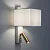 Dekart CL704480 с абажуром — это современное воплощение практичности и функциональной эстетики. Каркас изделия — металлический, окрашенный матовой белой краской. Абажур квадратной формы — из качественного белого текстиля с легким отливом. Кроме того, у светильника есть независимый led-модуль для чтения: с бронзовым корпусом, встроенным светодиодом и поворотным креплением, позволяющим регулировать направление светового потока. Источником основного света служит лампочка с цоколем Е14, светодиодный модуль для чтения имеет мощность 3Вт. Два выключателя (для основного и дополнительного света) расположены на корпусе.