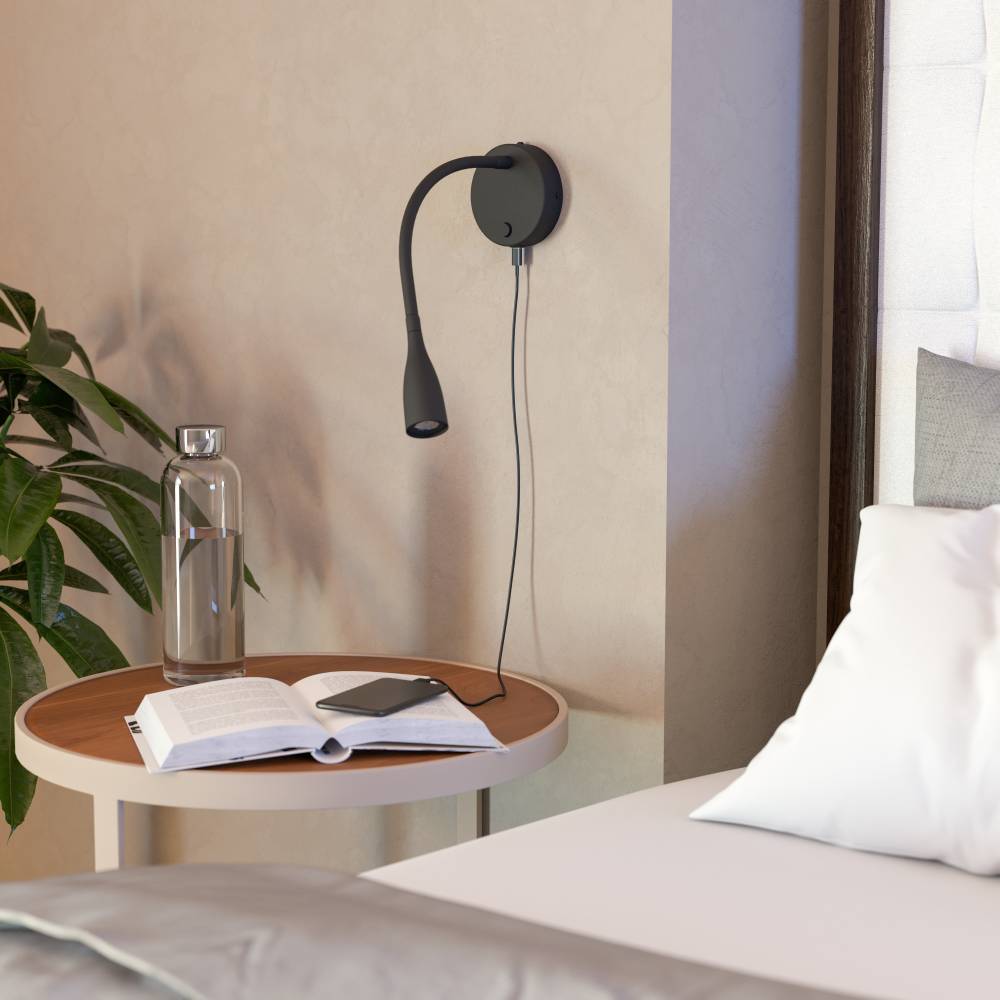 Бра с выключателем LED Olivandino 901781 Eglo чёрный на 1 лампу, основание чёрное в стиле современный гибкая ножка для чтения