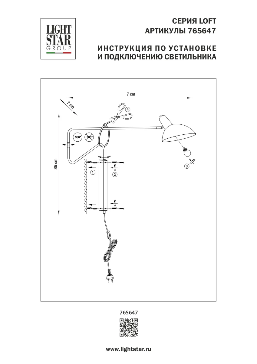 Бра с выключателем в розетку Loft 765647 Lightstar в розетку купить с доставкой по Москве и России в интернет магазине Уютный-Свет.рф
