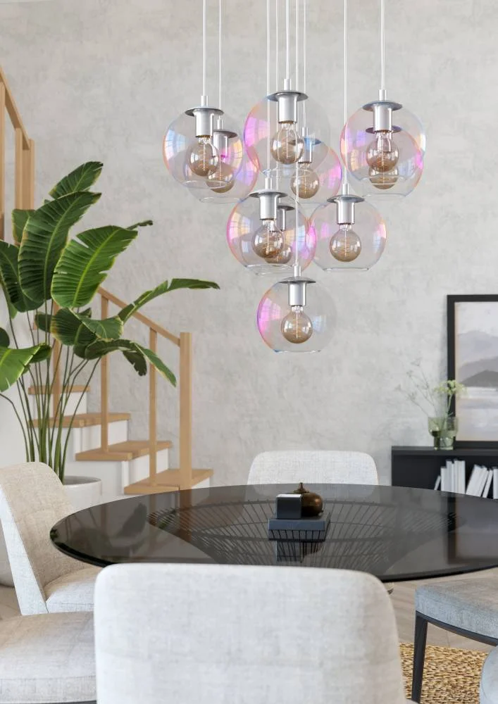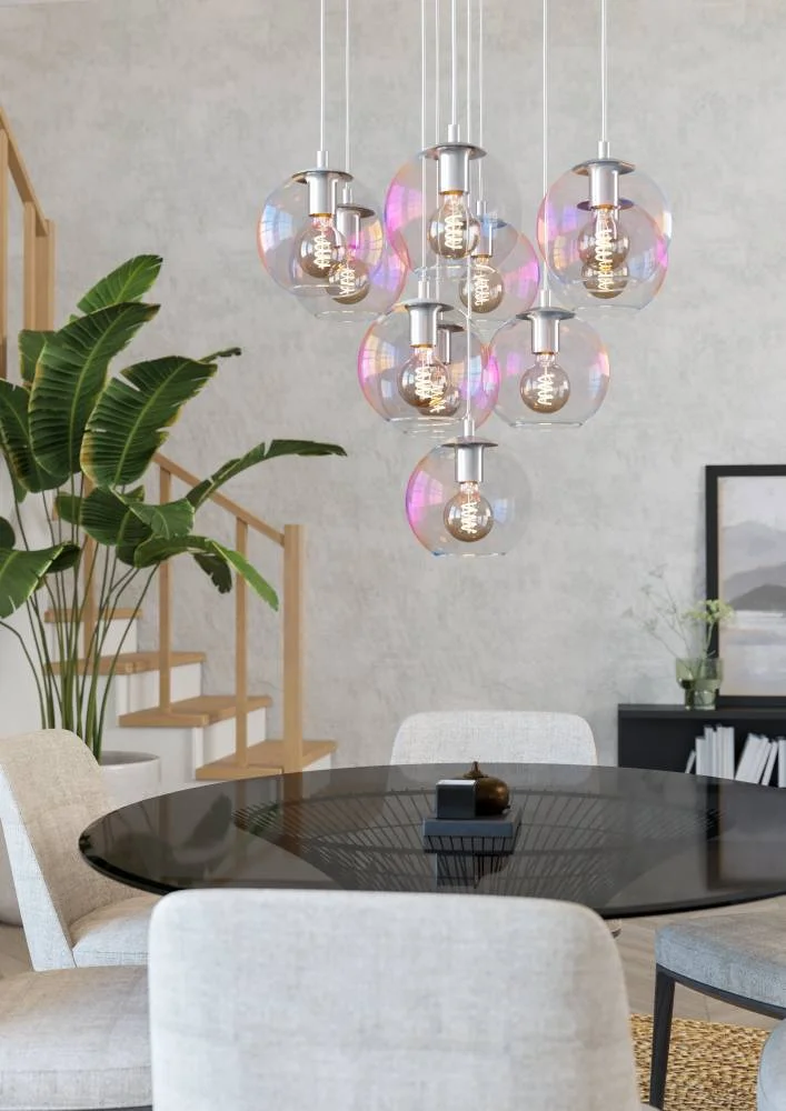 Люстра каскадная Ariscani 901922 Eglo прозрачная разноцветная на 10 ламп, основание хром в стиле современный шар каскад фото 2