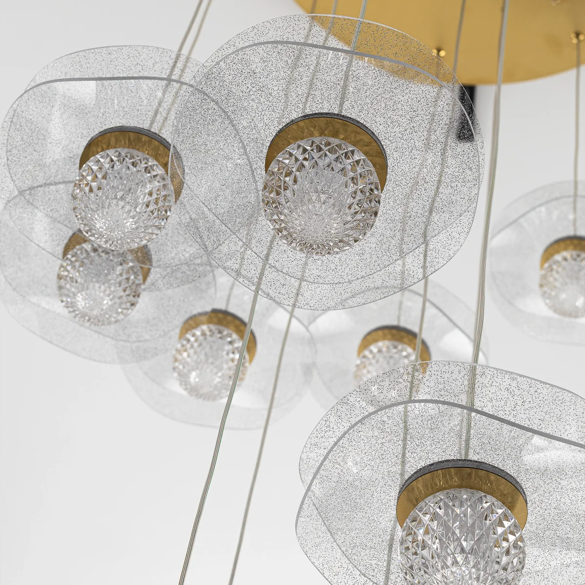 Citilux SIGNATURE CL247057 в стиле модерн станет изящным решением для светодизайна вашей просторной гостиной, зала с высокими потолками или лестницы между этажами. Корпус изделия — из металлического сплава бронзового оттенка. Плафоны из прозрачного оптического полимера имеют форму шара, с декором из лепестков. Источником света служат встроенные светодиоды с цветовой температурой 3000К, мощность светильника составляет 72Вт. Мягкое освещение без мерцания и пульсаций не вредит зрению и не утомляет глаза. Светильник можно установить на любой потолок, в том числе, на натяжные и навесные конструкции. Высота подвеса регулируется, тип крепления к потолку — планка.