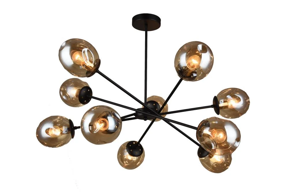 Люстра на штанге 0678CL-10BK Milosh Tendence янтарная на 10 ламп, основание чёрное в стиле лофт современный шар