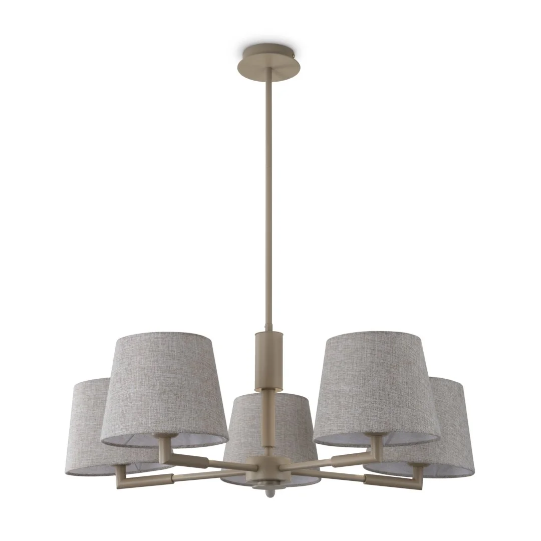 Люстра на штанге Butler FR2057PL-05BG Freya бежевая на 5 ламп, основание бежевое в стиле кантри американский классический фото 2