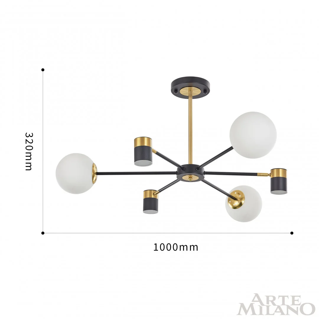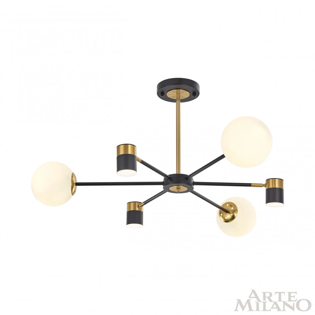 Люстра на штанге LED Ferrara-71040 274802/6 BK/GD Arte Milano белая на 6 ламп, основание чёрное в стиле современный фото 6