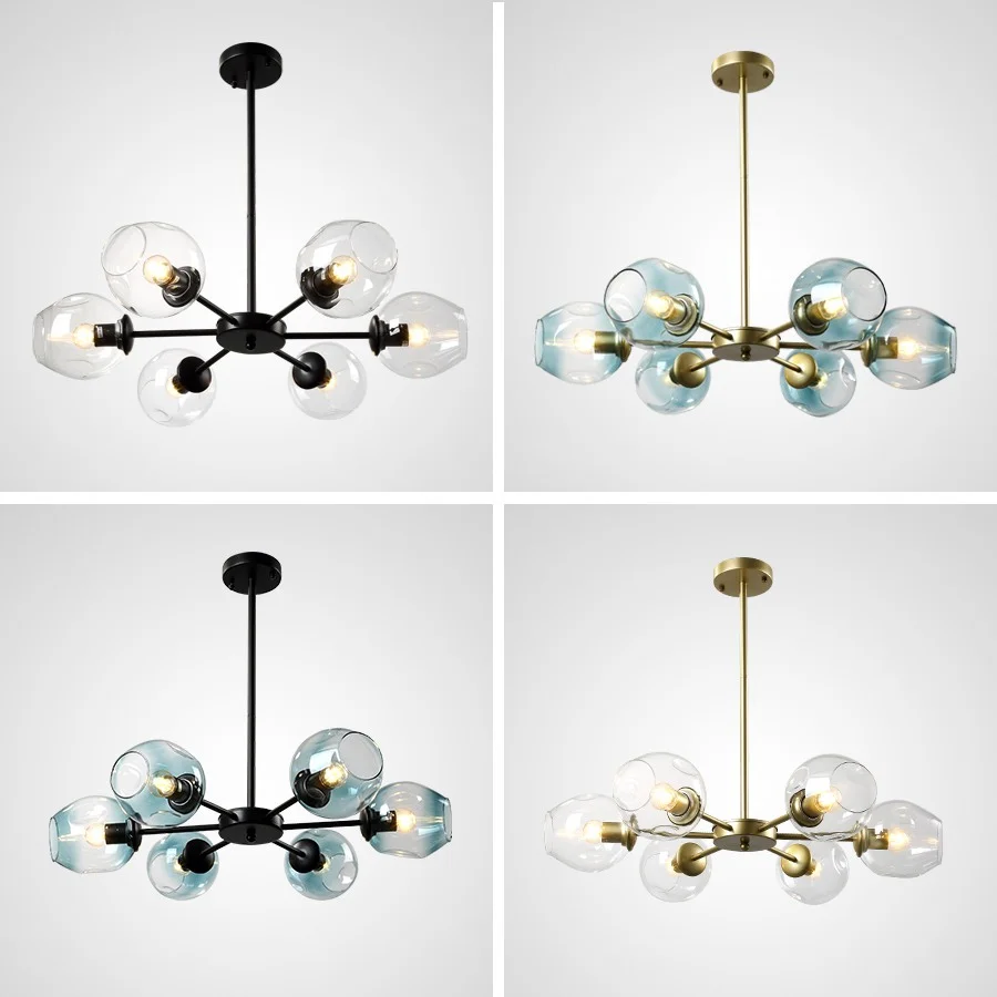 Люстра на штанге MARINE B 8 Black/Blue 189683-26 ImperiumLoft голубая на 8 ламп, основание чёрное в стиле скандинавский фото 17
