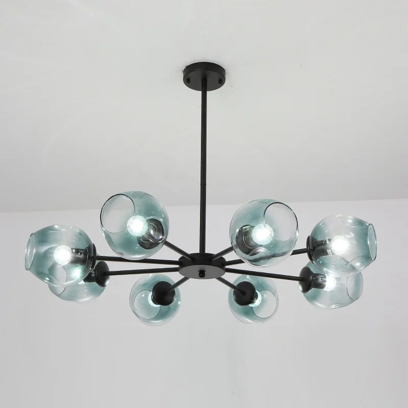 Люстра на штанге MARINE B 8 Black/Blue 189683-26 ImperiumLoft голубая на 8 ламп, основание чёрное в стиле скандинавский фото 2