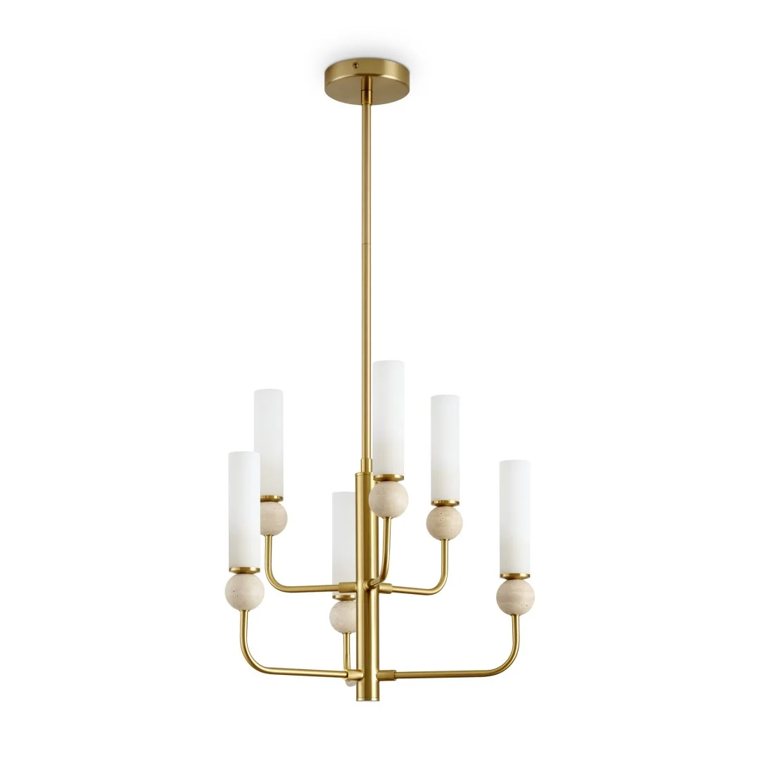 Люстра на штанге Sunspot FR5482CL-06BS1 Freya белая на 6 ламп, основание латунь в стиле современный
