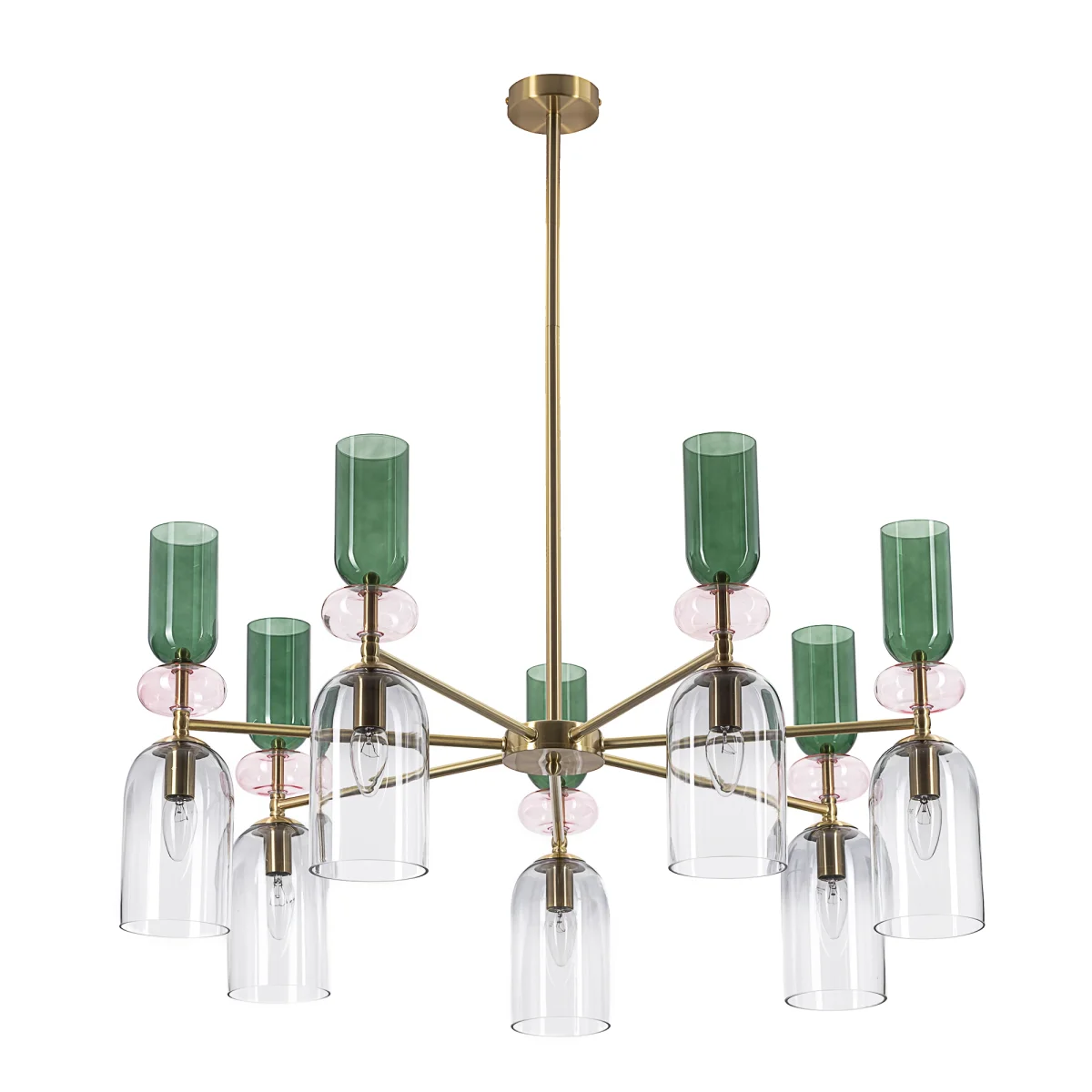 Citilux Tendy CL244171 станет ярким акцентом в любом модернистском или неоклассическом интерьере. Каркас люстры из металлического сплава, стильного оттенка латунь. Изящные плафоны и декор — из прозрачного стекла с разноцветной тонировкой: розовой, зеленой и дымчатой. Оригинальное сочетание оттенков создает модный и комфортный свет. В изделии используются семь лампочек с цоколем Е14, мощностью не более 60Вт для ламп накаливания. Люстру можно устанавливать на любые потолки, включая натяжные конструкции, тип крепления к потолку — планка.