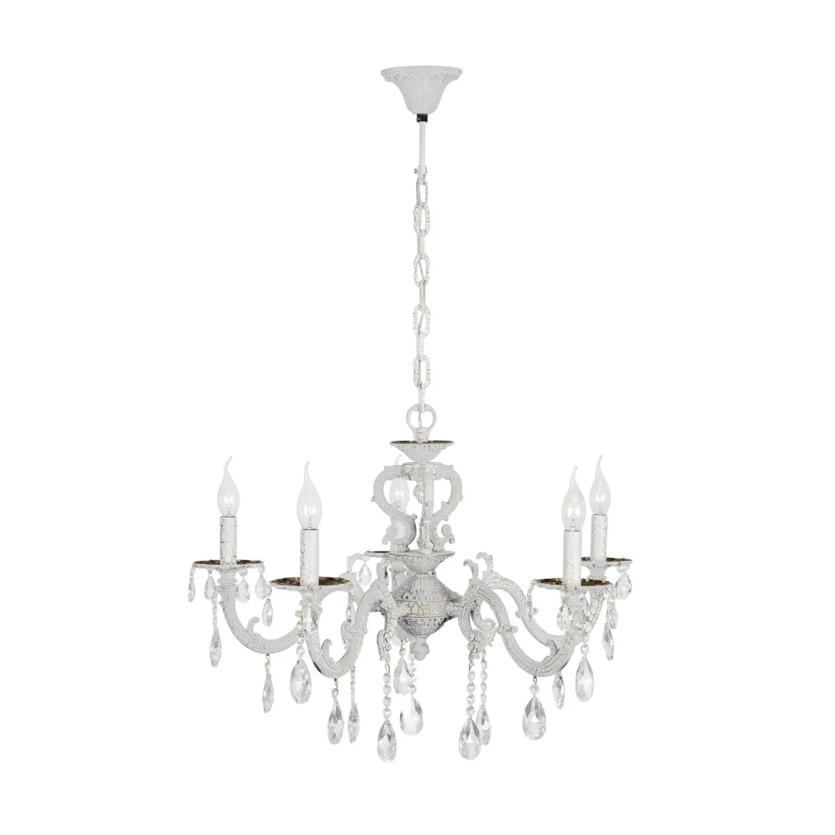 Люстра Siena E 1.1.5.200 BW из серии Siena – это воплощение классической элегантности и утонченности. Элегантные изогнутые вверх рожки из металла со свечами и хрустальные подвески в форме гранёных кристаллов-листков создают неповторимую атмосферу роскоши. В основе композиции лежит изящная состаренная арматура, выполненная в белом цвете с прожилками золотого, что придает люстре особую изысканность. Хрустальные листочки, определяющие основную композицию, добавляют светильнику блеска и великолепия.