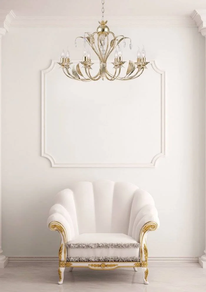 Люстра подвесная Arosio E 1.1.8 G Arti Lampadari в стиле Классика, рекомендуем ее для установки в прихожей, кухне, гостиной или спальне, возможна установка на натяжной потолок при использовании светодиодных ламп, будет идеально дополнять светильники коллекции Arosio от фабрики Arti Lampadari. Характеристики: плафона - Без плафона, материал плафона - , цвет арматуры - Золотой, материал арматуры - Металл / Хрусталь. В светильнике 8 ламп мощностью по 40 Вт с цоколем E14, площадь освещения до 16 кв.м, размеры светильника *450***700** мм. Стильную и красивую люстру Arosio E 1.1.8 G Arosio от фабрики Arti Lampadari можно купить с доставкой из рук в руки по Москве и России в нашем специализированном интернет магазине интерьерного освещения Уютный-Свет.рф. Вопросы по этому светильнику можете уточнить в нашем Telegram канале.