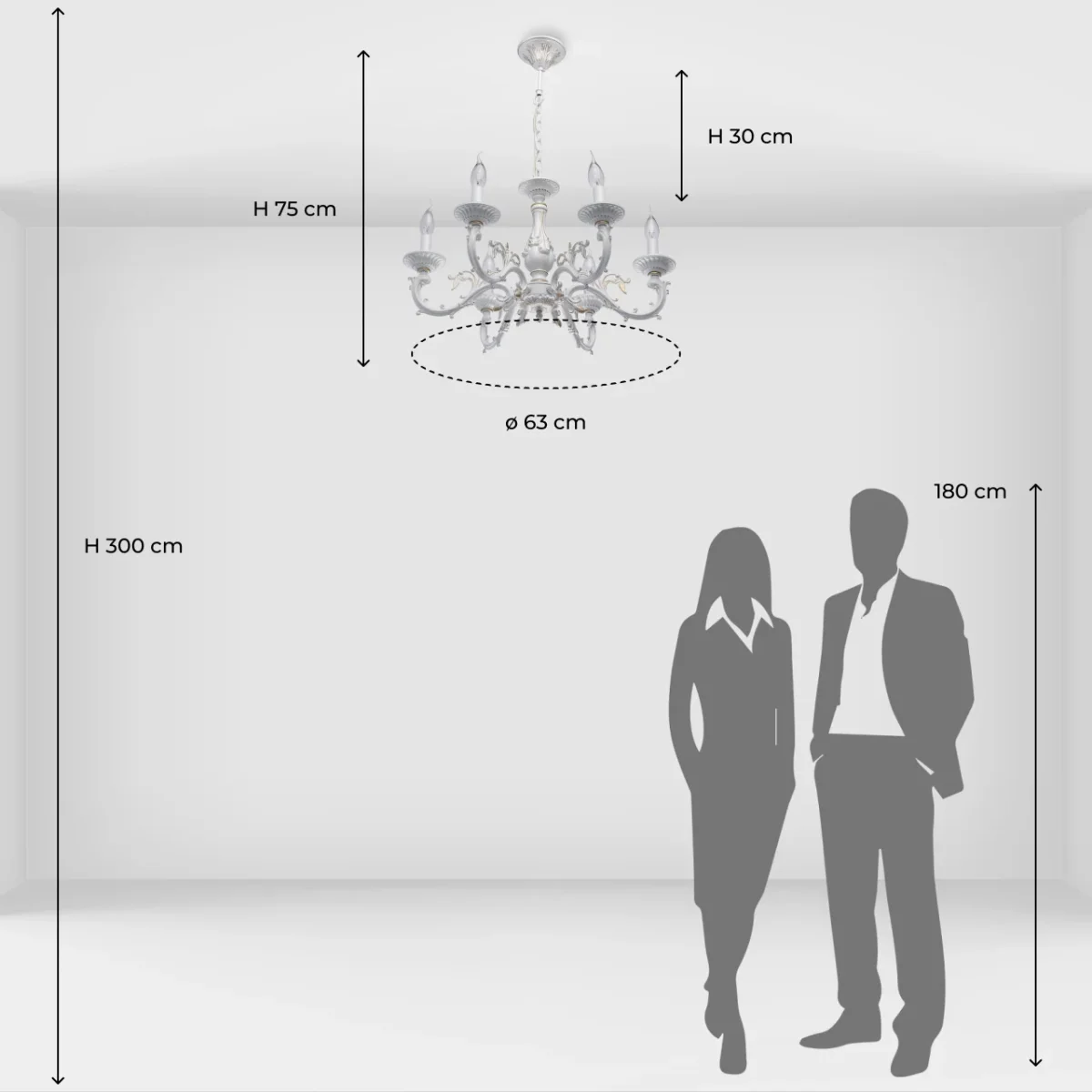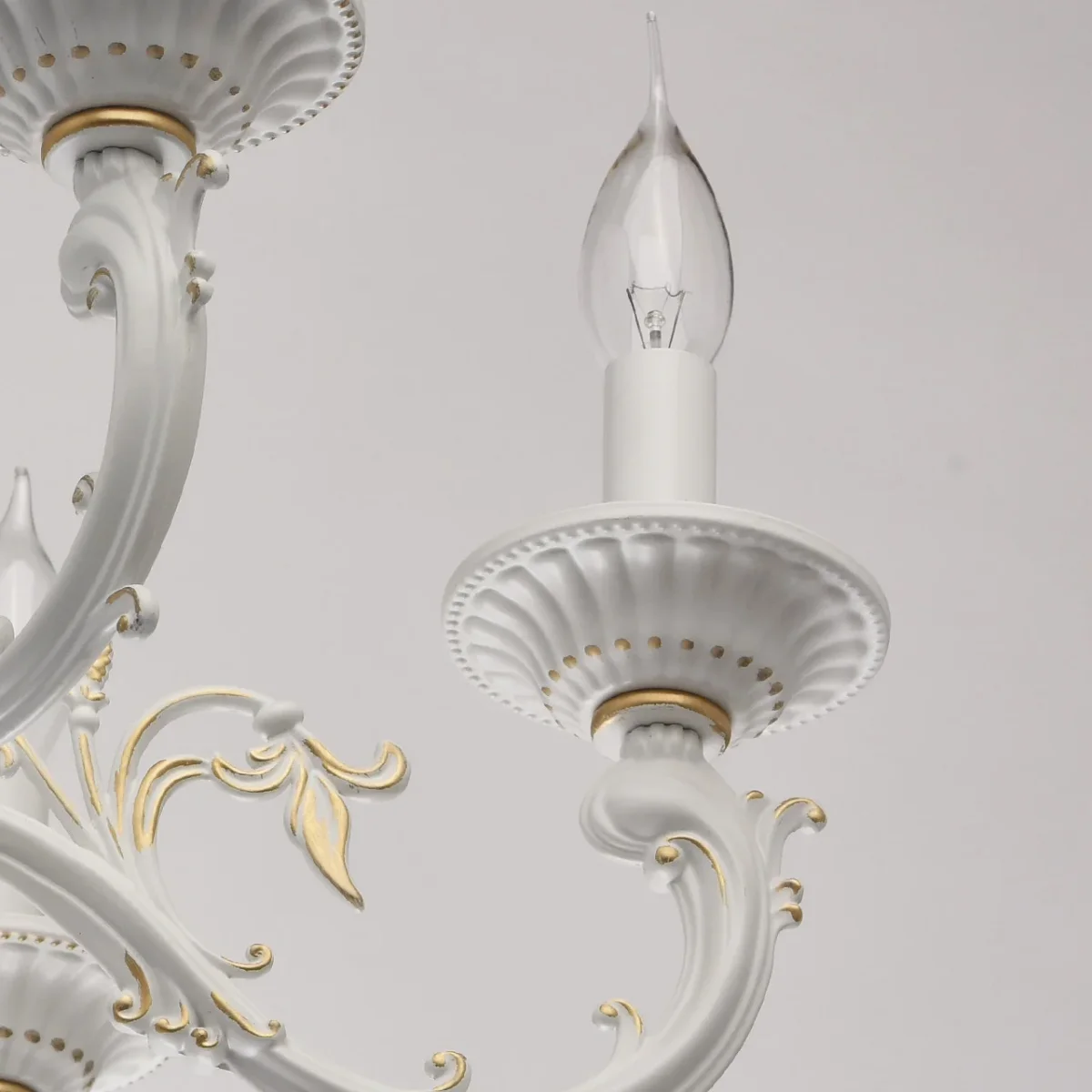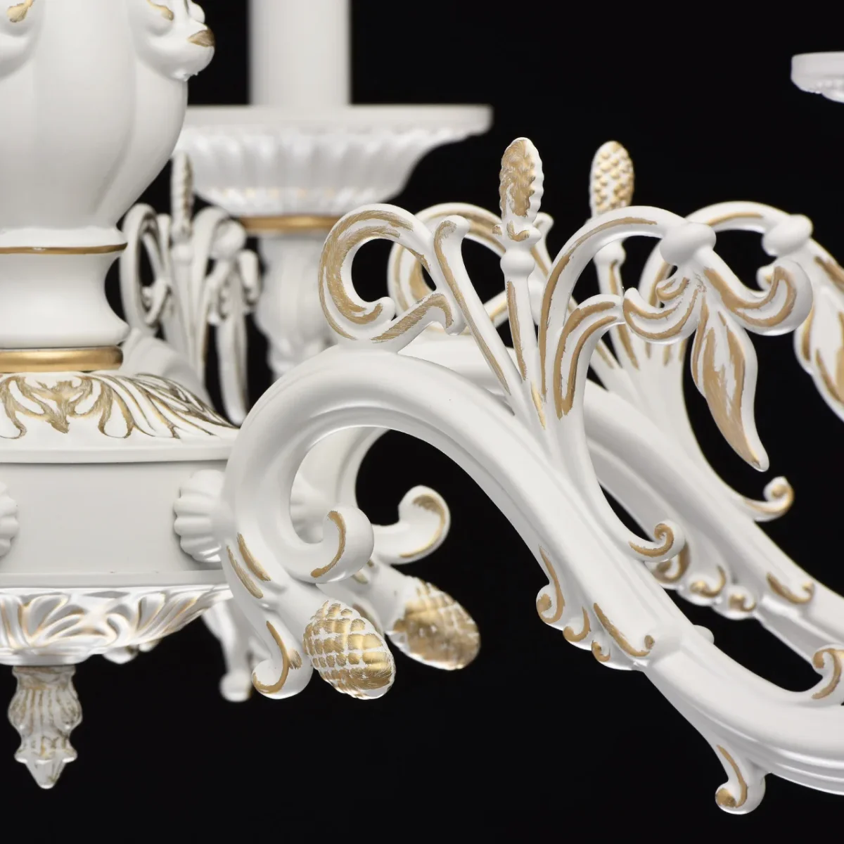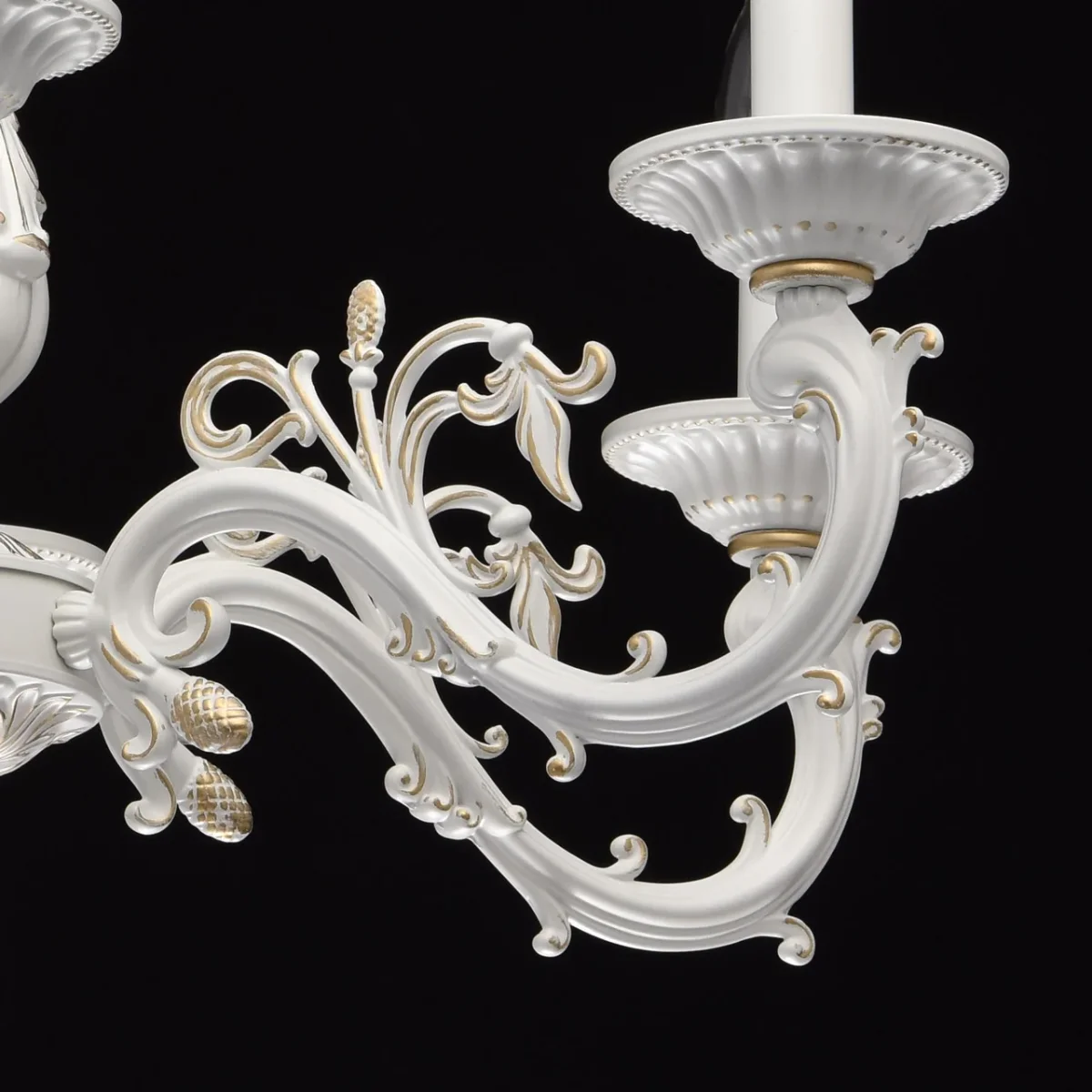 Люстра из коллекции «Аврора» станет достойным украшением классического интерьера. Основание из металла выполнено в двух вариациях: цвета античной бронзы и белого цвета с эффектом патины. Грациозно изогнутые рожки украшены изящными витыми элементами в растительной стилистике, а розетки – резным узором. Под стать композиции – источники света в форме свечей.