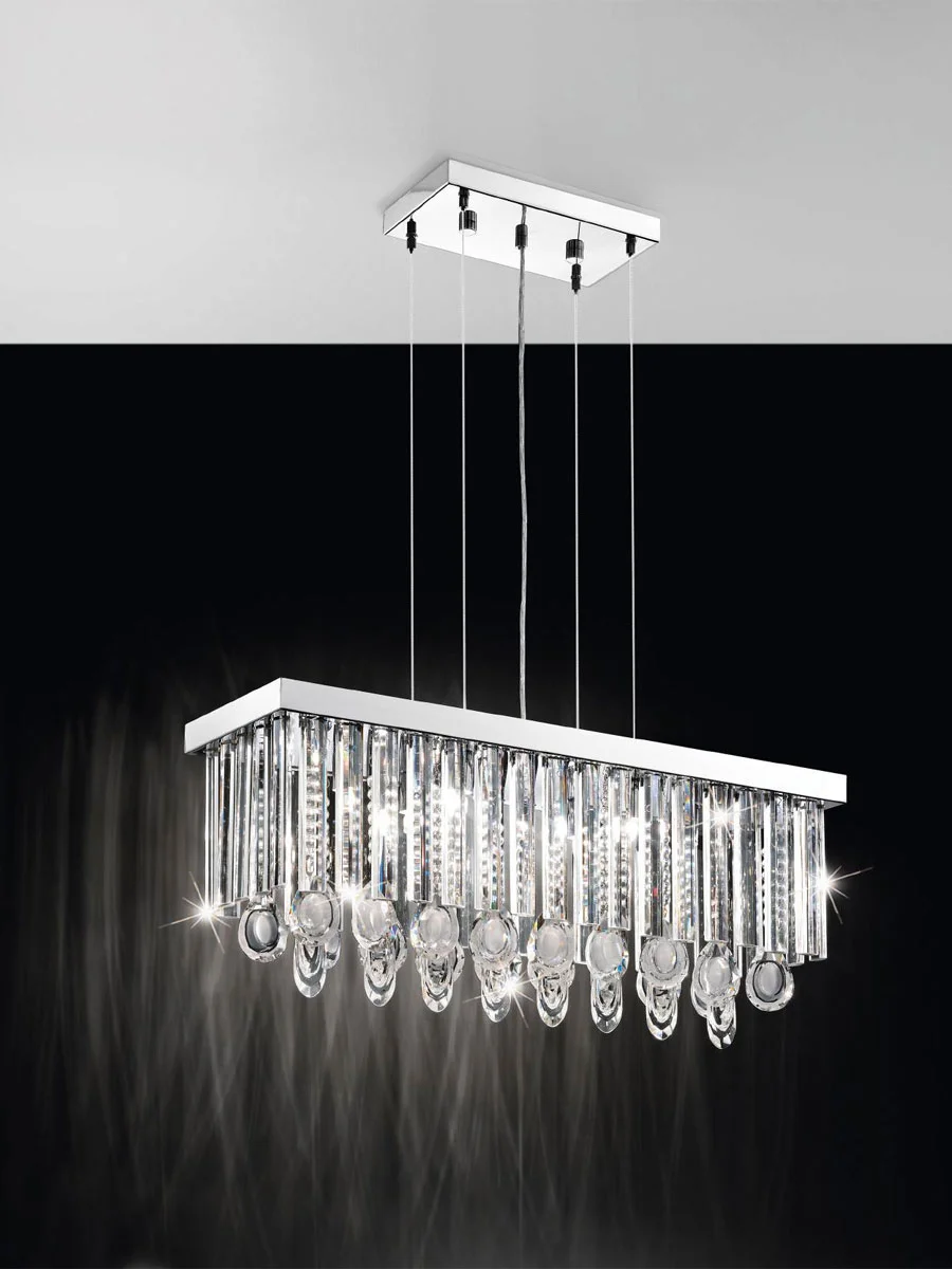 Люстра подвесная CALAONDA 93422 Eglo в стиле Арт-деко / Классика / Модерн, рекомендуем ее для установки в прихожей, кухне, гостиной или спальне, возможна установка на натяжной потолок при использовании светодиодных ламп, будет идеально дополнять светильники коллекции Calaonda от фабрики Eglo. Характеристики: цвет плафона - Прозрачный, материал плафона - Хрусталь, цвет арматуры - Хром, материал арматуры - Металл / Хрусталь. В светильнике 7 ламп мощностью по 33 Вт с цоколем G9, площадь освещения до 12 кв.м, размеры светильника *1100*690*230*** мм. Стильную и красивую люстру 93422 Calaonda от фабрики Eglo можно купить с доставкой из рук в руки по Москве и России в нашем специализированном интернет магазине интерьерного освещения Уютный-Свет.рф. Вопросы по этому светильнику можете уточнить в нашем Telegram канале.
