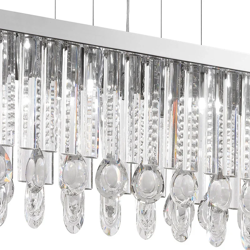 Люстра подвесная CALAONDA 93423 Eglo в стиле Арт-деко / Классика / Модерн, рекомендуем ее для установки в прихожей, кухне, гостиной или спальне, возможна установка на натяжной потолок при использовании светодиодных ламп, будет идеально дополнять светильники коллекции Calaonda от фабрики Eglo. Характеристики: цвет плафона - Прозрачный, материал плафона - Хрусталь, цвет арматуры - Хром, материал арматуры - Металл / Хрусталь. В светильнике 11 ламп мощностью по 33 Вт с цоколем G9, площадь освещения до 18 кв.м, размеры светильника *1100*960*230*** мм. Стильную и красивую люстру 93423 Calaonda от фабрики Eglo можно купить с доставкой из рук в руки по Москве и России в нашем специализированном интернет магазине интерьерного освещения Уютный-Свет.рф. Вопросы по этому светильнику можете уточнить в нашем Telegram канале.