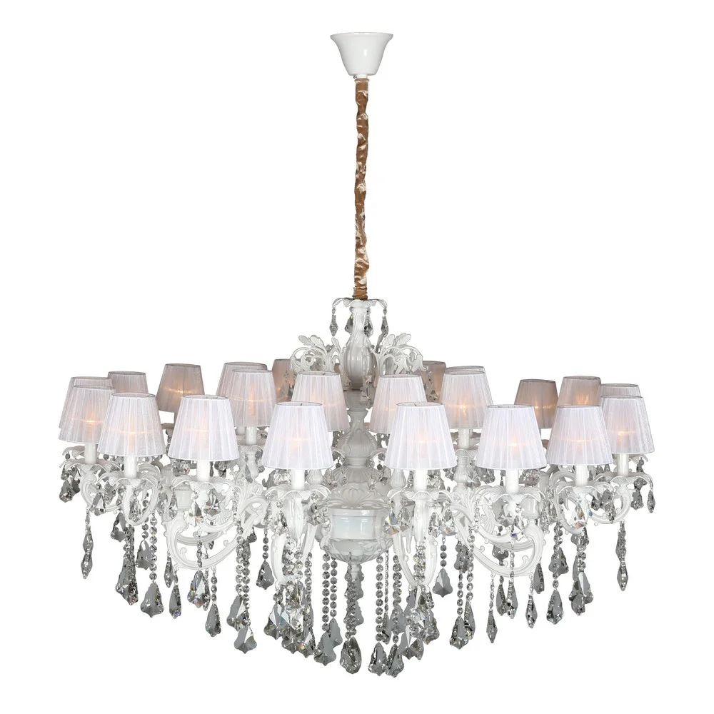Люстра Omnilux серии Catanzaro – это воплощение классического стиля с элементами изысканной ковки. Изогнутые рожки люстры украшены декоративными элементами из белого металла и хрустальными подвесками, придающими ей особую элегантность. Светильник оснащён 27 лампами мощностью 40 Вт каждая, что обеспечивает общую мощность 1080 Вт, создавая яркое и равномерное освещение.