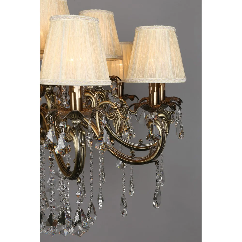 Погрузитесь в атмосферу роскоши с подвесной люстрой Omnilux Catanzaro, созданной в классическом стиле. Элегантная арматура из бронзового металла, выполненная в стиле под ковку, прекрасно сочетается с бежевыми плафонами из ткани, украшенными хрустальными подвесками. Люстра украшена лампами в виде свечей на ветру, создавая восхитительный световой эффект. Декоративный чехол скрывает цепь, добавляя изящества.