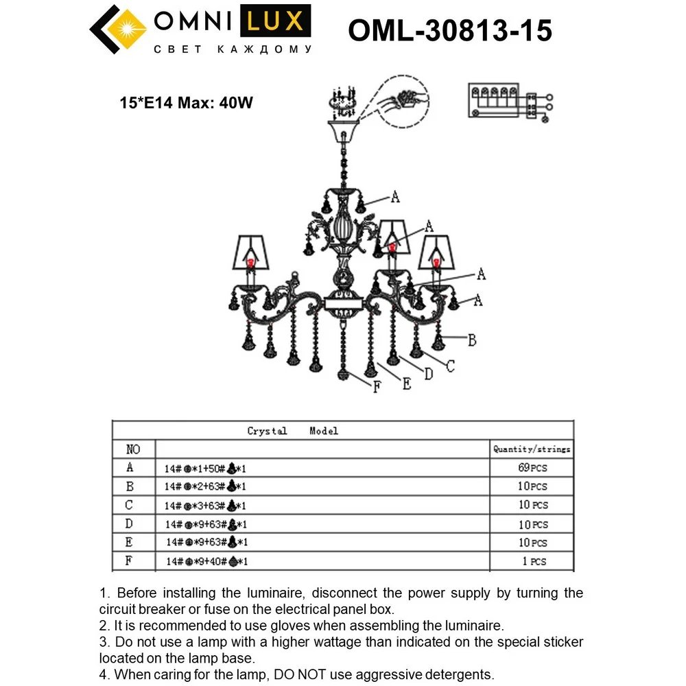 Люстра оснащена 15 лампами мощностью 40 Вт каждая, обеспечивая общую мощность в 600 Вт, что позволяет осветить пространство до 30 кв.м. Высота светильника регулируется от 690 мм до 1500 мм, что позволяет идеально вписать его в любой интерьер, будь то гостиная, загородный дом, кабинет, прихожая или спальня.
