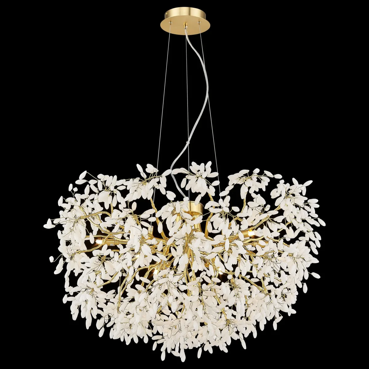 Люстра подвесная Dorothy WE193.13.403 Wertmark белая на 13 ламп, основание матовое золото в стиле флористика классический