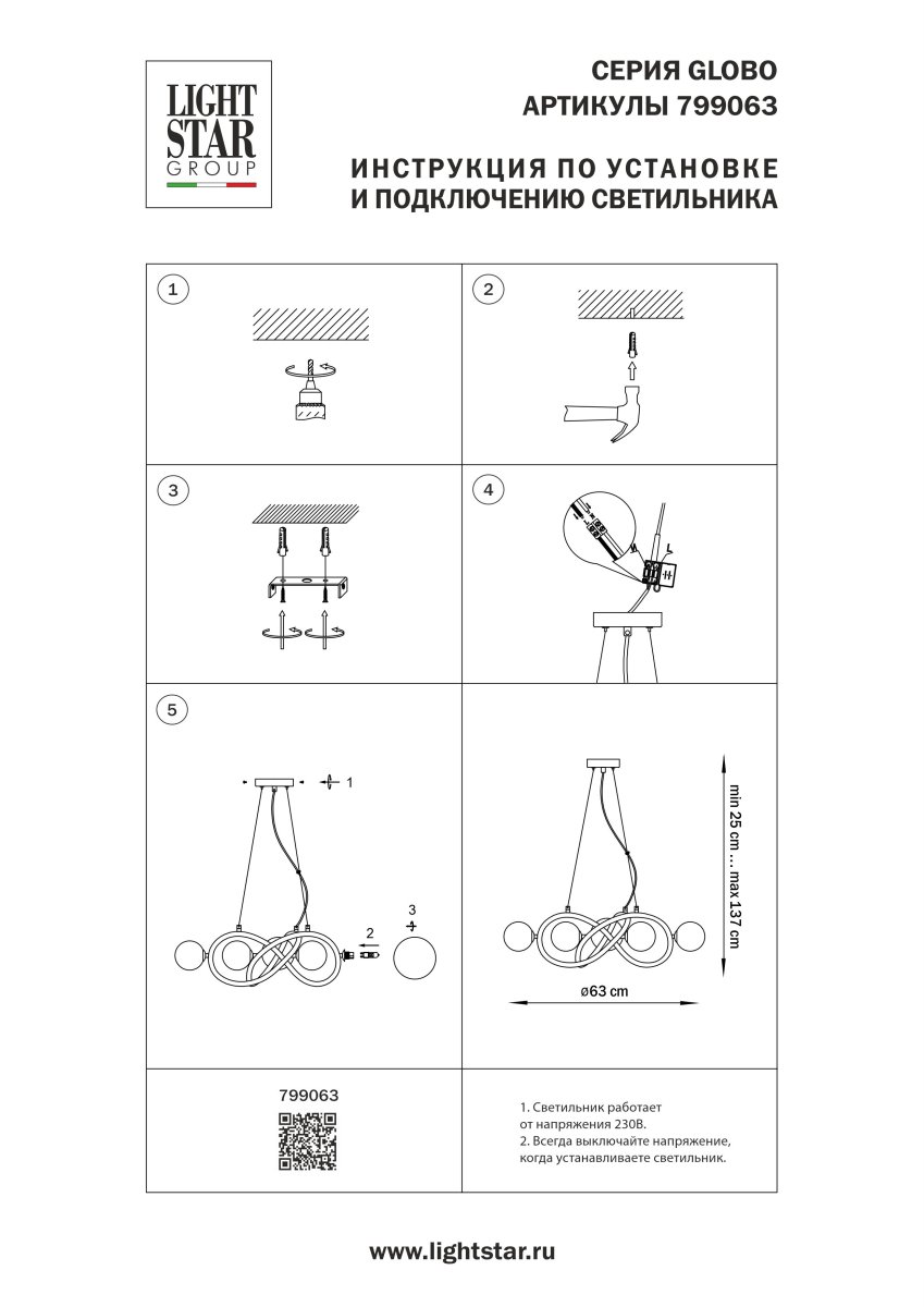 Люстра подвесная Globo 799063 Lightstar шар купить в Москве в интернет магазине Уютный-Свет.рф