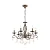 Арматура цвета бронзы придает светильнику благородный вид, который прекрасно сочетается с витиеватыми сплетениями металла. Люстра украшена многочисленными подвесками из кристаллов, которые добавляют ей элегантности и утонченности. С высотой плафона 560 мм и регулируемой общей высотой от 760 до 1160 мм, люстра позволяет легко настроить необходимую длину подвеса в 450 мм, что делает её универсальной для различных потолков, включая натяжные. С диаметром 630 мм и шестью лампами с цоколем E14, мощностью по 40 Вт каждая, она освещает площадь до 12 кв.м, создавая теплое и уютное освещение.