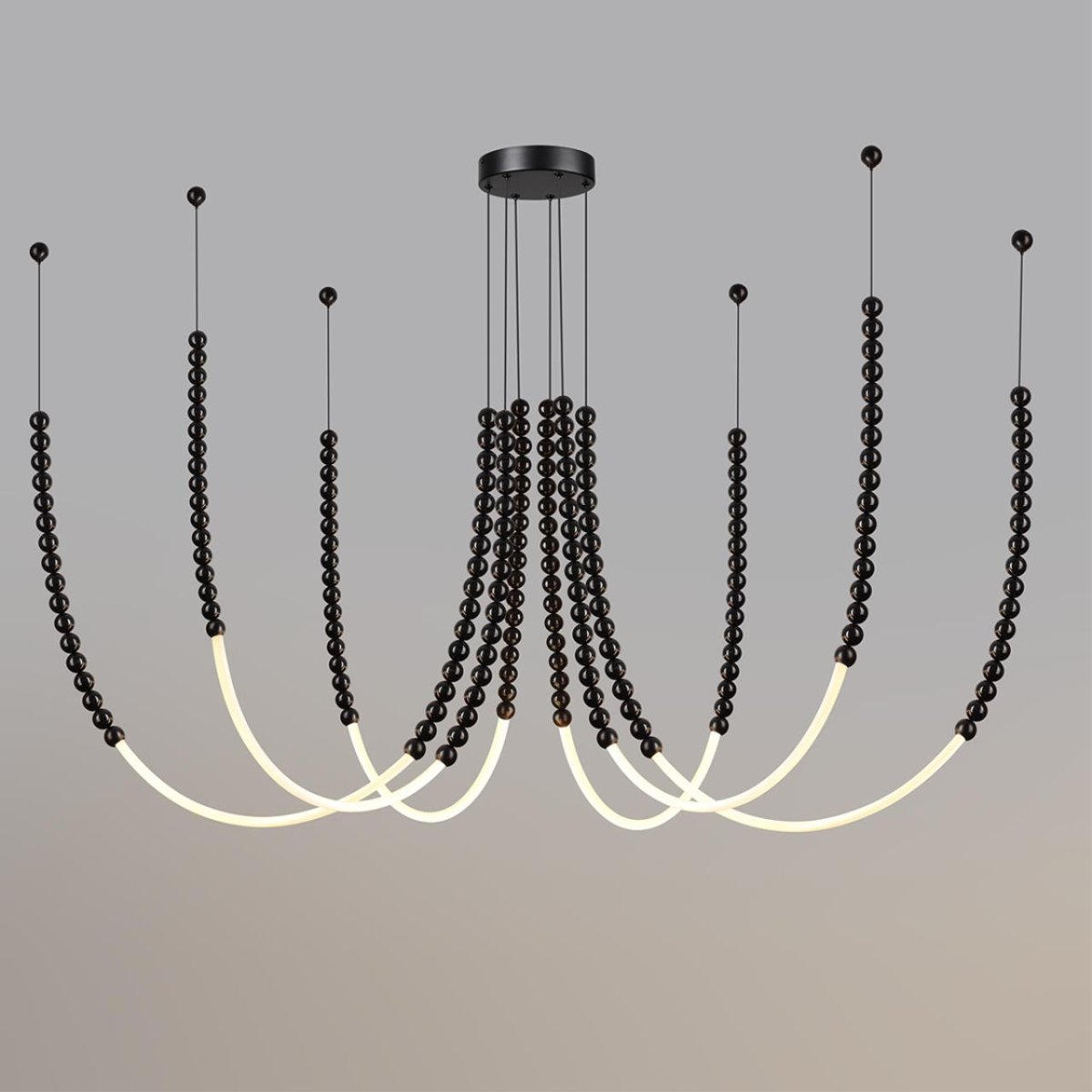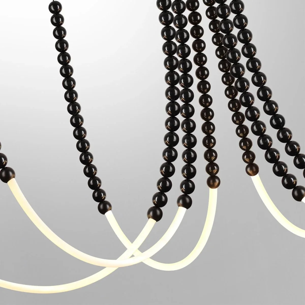 Monella — большая линия светильников оригинальной формы в легком игривом дизайне с использованием черных полированных шариков из акрила. В светильнике используются необычные фиксаторы к потолку в виде россыпи маленьких металлических шариков, которые можно расположить на любом удалении от центра светильника и, таким образом, создать свою форму.