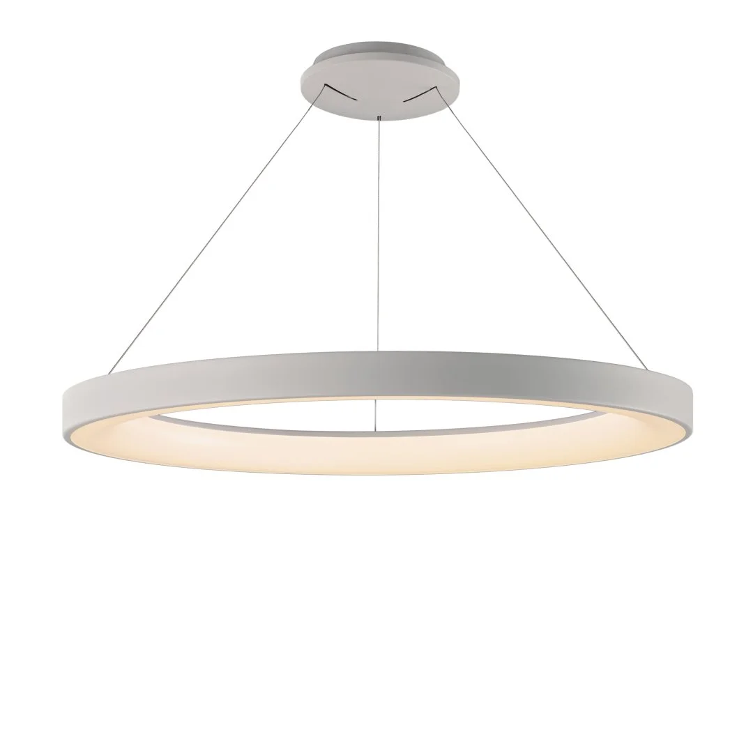 Люстра NISEкO 8569 из серии Niseko Mantra — это воплощение современного дизайна и эффективного освещения. Ее минималистичная форма идеально вписывается в любой интерьер, создавая атмосферу спокойствия и уюта. Белая металлическая лента, обрамляющая светодиоды, рассеивает мягкий свет по внутренней стороне кольца, создавая приятный ореол. Сочетание круглой формы и мягкого внутреннего освещения делает эту люстру идеальной для просторных гостиных, где она гармонично сочетается с натуральными материалами, такими как дерево.
