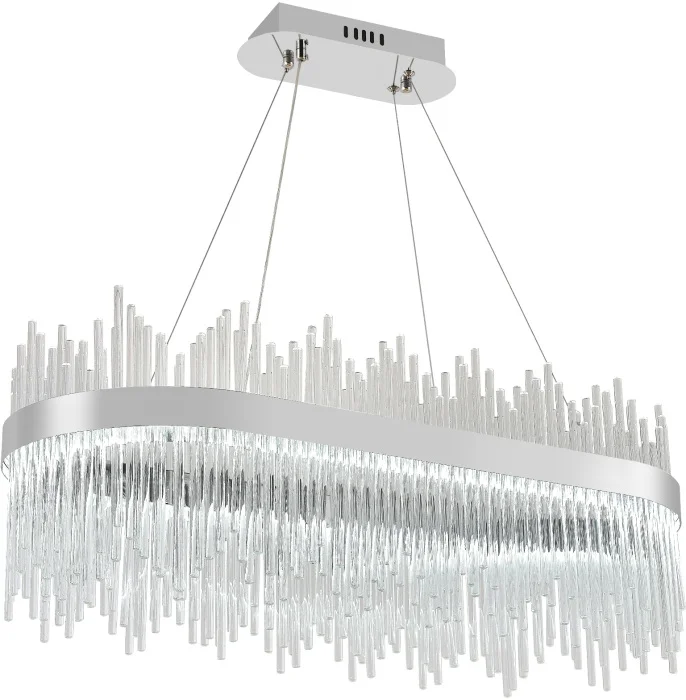 Темпераментный светильник Tempio из коллекции Natali Kovaltseva — это воплощение гармонии технологии и стиля. Его овальный контур диаметром 80 см, украшенный прозрачным гранёным хрусталём, отражает свет как драгоценный камень. Хромированная арматура подчеркивает современный характер люстры и делает её идеальным решением для гостиной, спальни или просторной столовой площадью до 22 кв.м. Высота регулируется, люстра адаптируется под любую высоту потолка, в том числе натяжного.