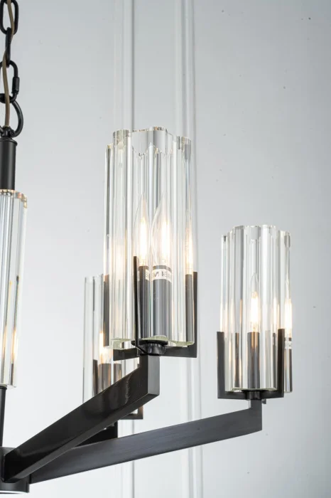 Люстра подвесная Malone 6035-6 BL CL Belfast прозрачная на 6 ламп, основание чёрное в стиле современный фото 3