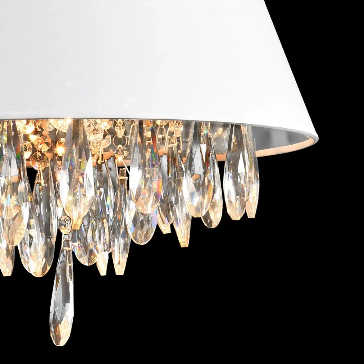 Линия MITRIM — это изысканное сочетание классики и современности, которое дизайнеры могут использовать для создания уютных и стильных интерьеров. Белый абажур из ткани и хрустальные подвески придают светильнику элегантность и легкость. Внутри абажур серебристо-зеркального цвета, что усиливает игру света, умножая его кратно. Благодаря своему дизайну, светильник становится центральным элементом комнаты. Он идеально подходит для столовых зон, гостиных или спален.