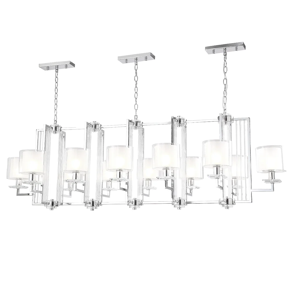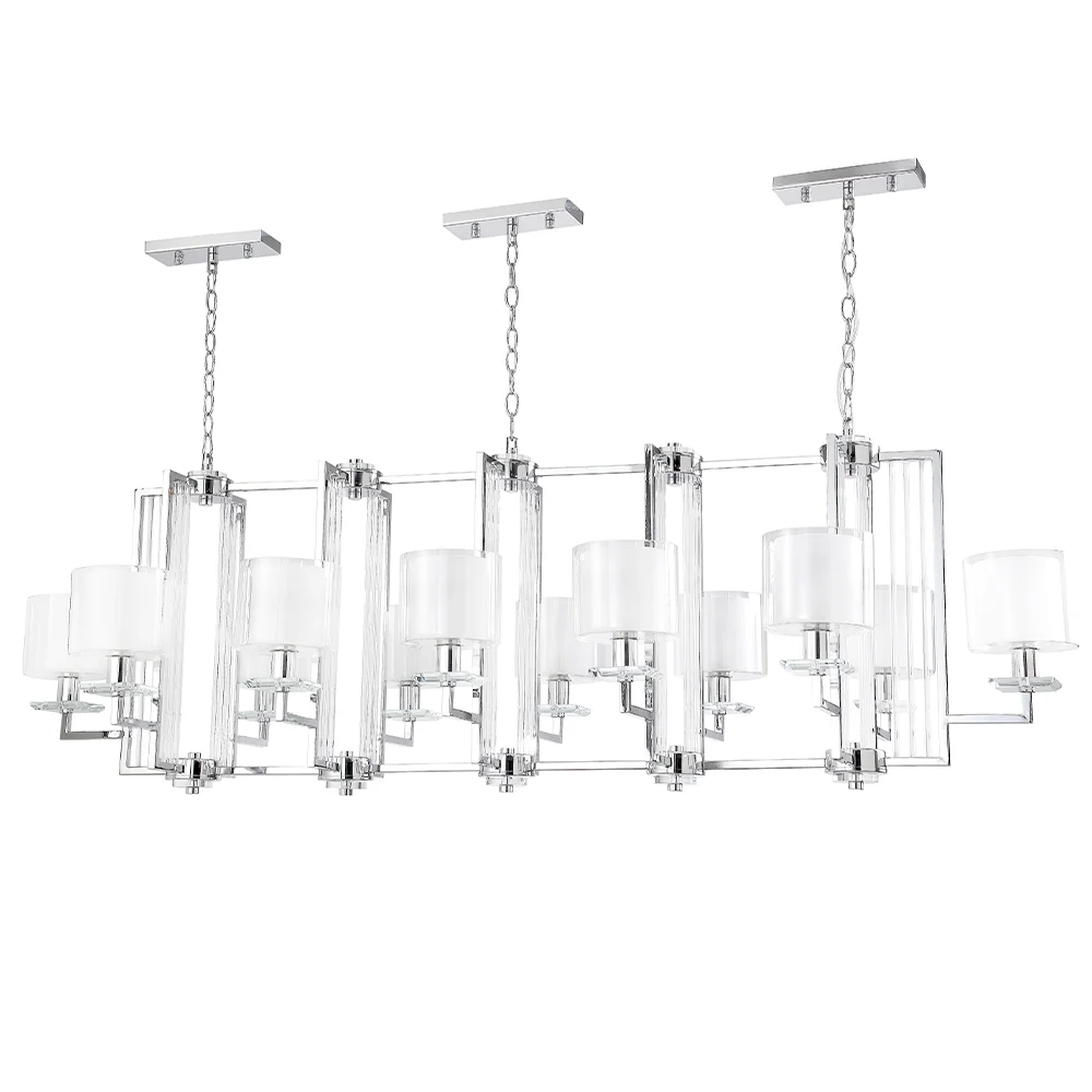 Люстра Crystal Lux из коллекции Nicolas – это идеальное сочетание современного дизайна и функциональности. Своей прямоугольной формой и монументальной воздушностью она создаст уникальную атмосферу в вытянутых комнатах. Изюминка люстры заключается в её геометрических линиях арматуры и двойных стеклянных плафонах, которые комбинируют прозрачное и белое стекло, создавая эффектный контраст. Белые и прозрачные плафоны прекрасно дополняют никелевую и прозрачную арматуру, придавая люстре неповторимый стиль.