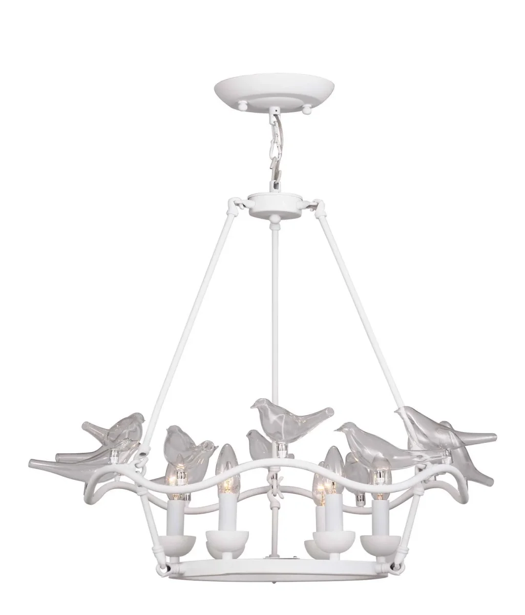 Люстра подвесная Pajaritos 1751-6P Favourite без плафона на 6 ламп, основание белое в стиле кантри птички