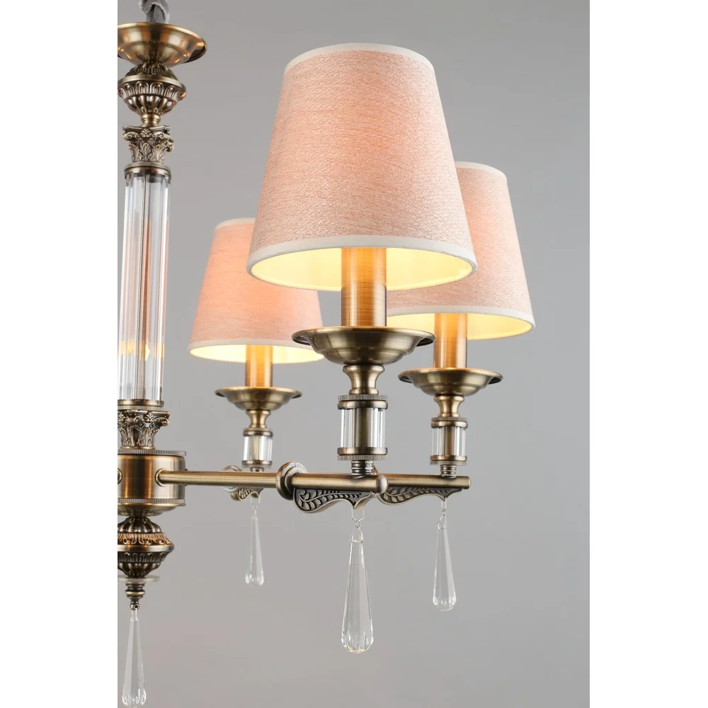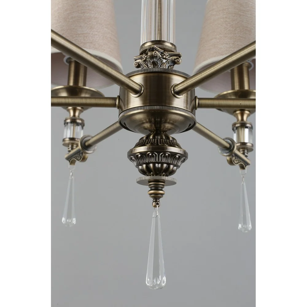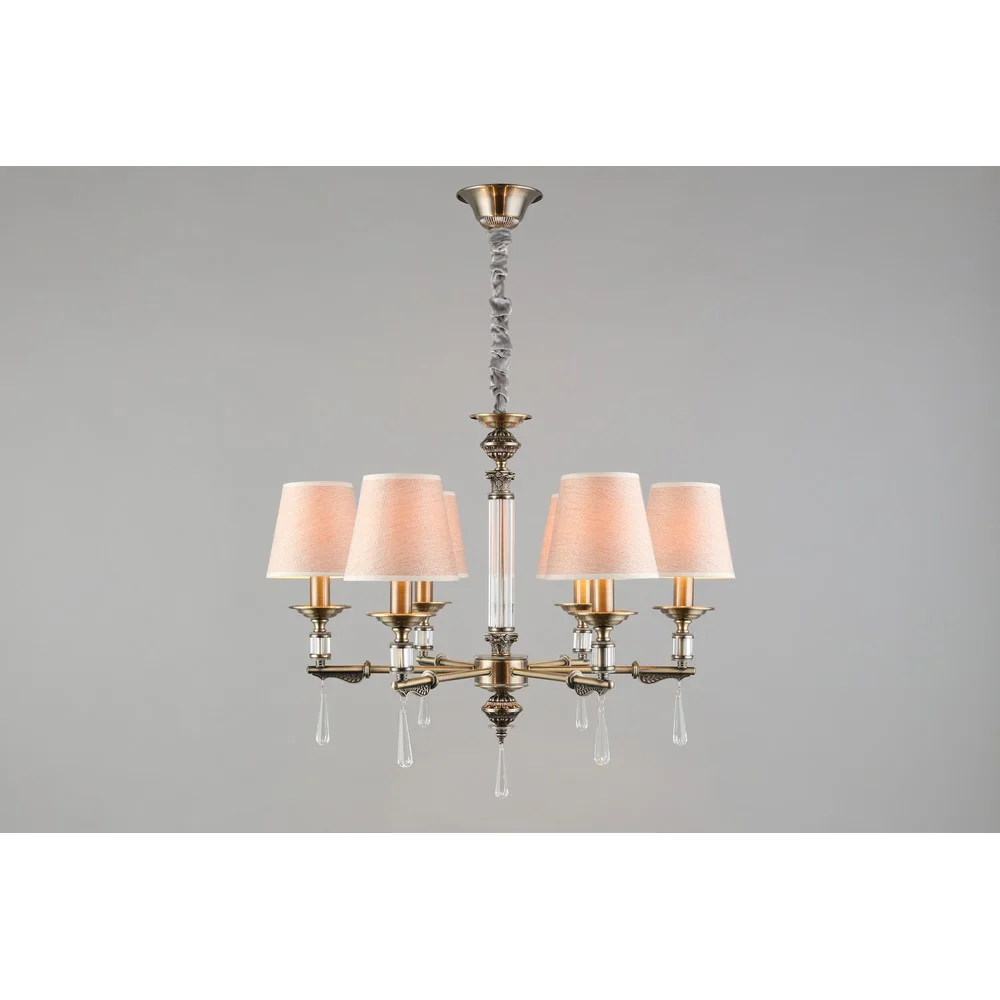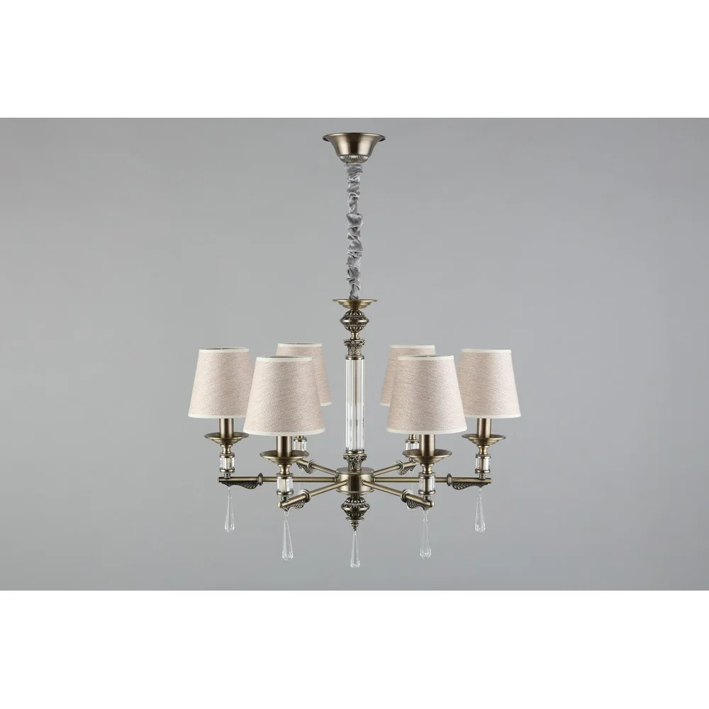 Люстра Omnilux Rivoli привносит в интерьер не только изысканность, но и утонченную декоративность. Ее изящная форма, декорированная хрусталем и тканевыми плафонами благородного серого цвета, создает неповторимую гармонию. Комбинация старинной бронзовой арматуры и прозрачного хрусталя излучает мягкое, но интенсивное освещение мощностью до 240 Вт, способное осветить пространство до 12 м².
