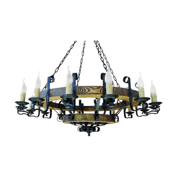 Люстра подвесная Ш-16 Тарсьма в стиле Кантри. Рекомендуется для установки в прихожей, кухне, гостиной или спальне, будет идеально дополнять светильники серии от фабрики Тарсьма. Цвет плафона - Без плафона, материал плафона - , цвет арматуры - Коричневый, материал арматуры - Дерево. В светильнике 16 ламп мощностью - 40 Вт, с цоколем E14, площадь освещения до 32 кв.м, размеры светильника - 380*110*1100* мм. Люстру Ш-16 для интерьера в стиле Кантри, можно купить с доставкой по Москве и России в нашем интернет магазине.
