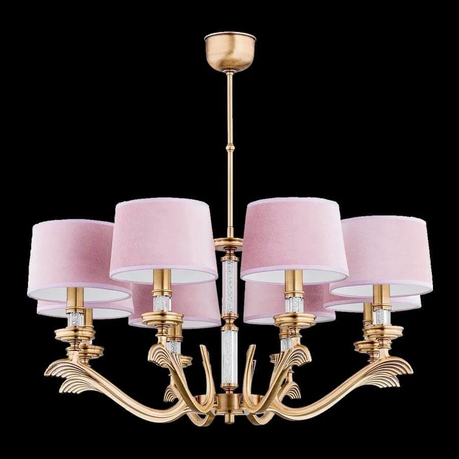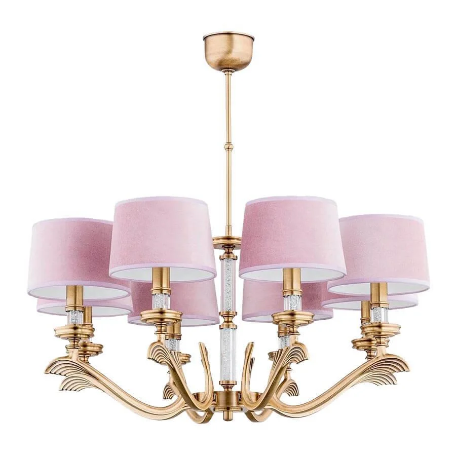 Люстра подвесная Sparone SPA-ZW-8(P/A) Kutek розовая на 8 ламп, основание золотое в стиле американский