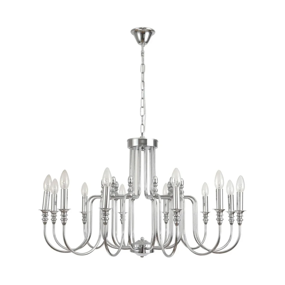 Модель Suana из коллекции Suana Lumion воплощает изысканный классический стиль с акцентом на элементы ар-деко. Хромированная металлическая арматура и прозрачные стеклянные плафоны создают впечатление лёгкости и элегантности. Благодаря суммарной мощности 480 Вт (12 ламп по 40 Вт), люстра освещает до 24 м², что делает её идеальным решением для просторной гостиной или столовой, где важна выразительная и в то же время изящная деталь.