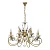 Основание светильника гальванизировано в цвет бронзы и патинировано. Декоративные элементы выполнены по технологии художественного литья. Декоративные розетки и центральная ось выполнены из белого глазурированного фарфора. Светильник декорирован прозрачным хрусталем.