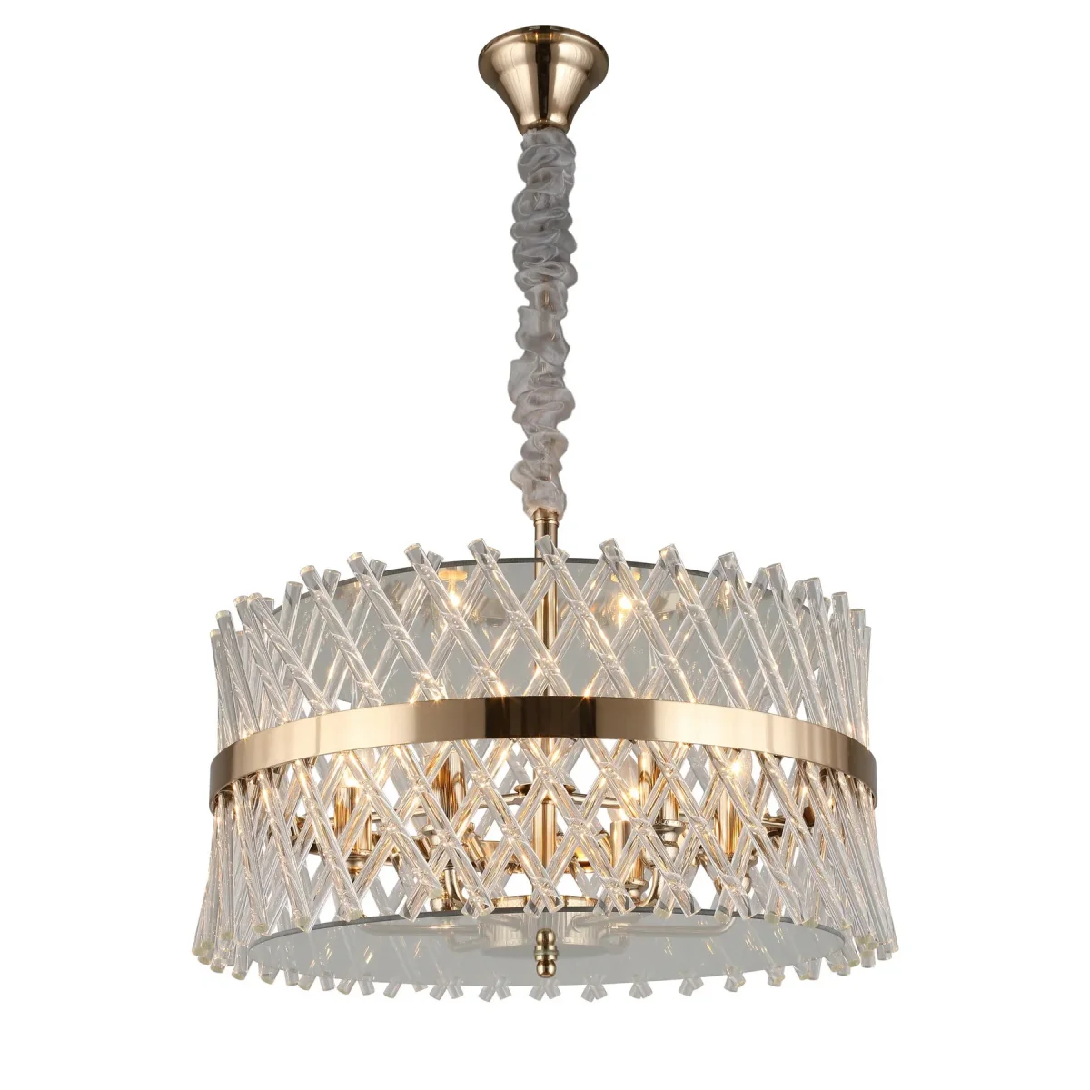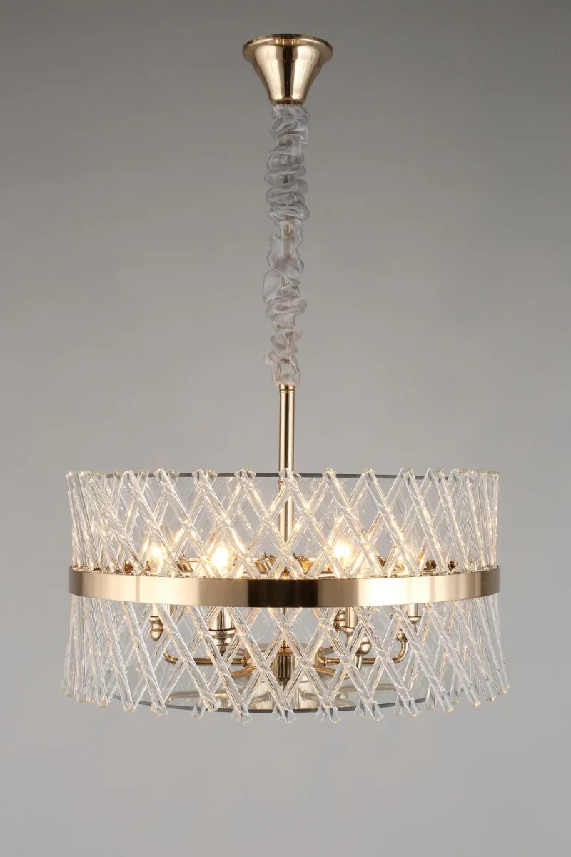 Мощность люстры составляет 240 Вт (6 ламп по 40 Вт), что обеспечивает мягкое освещение до 12 кв. м. Этот светильник идеально подходит для гостиных и кабинетов с современным интерьером, добавляя пространству утончённости и изысканности. Люстра станет ярким акцентом на фоне светлых и темных оттенков, создавая игру света на металлических и стеклянных элементах.