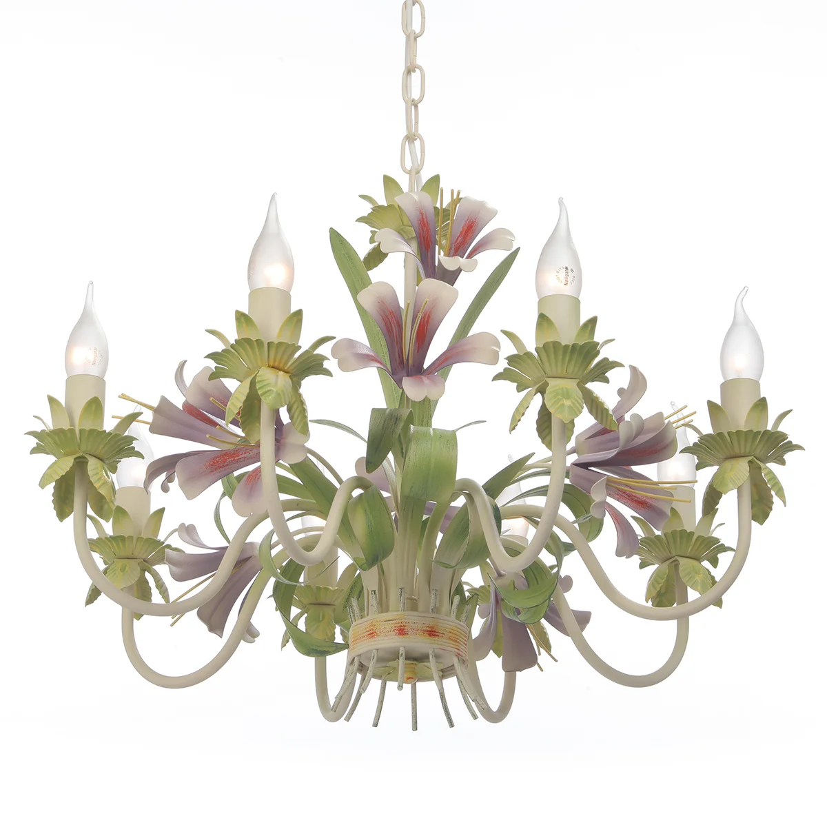 Люстра подвесная V1116/8 Vitaluce без плафона на 8 ламп, основание бежевое в стиле флористика