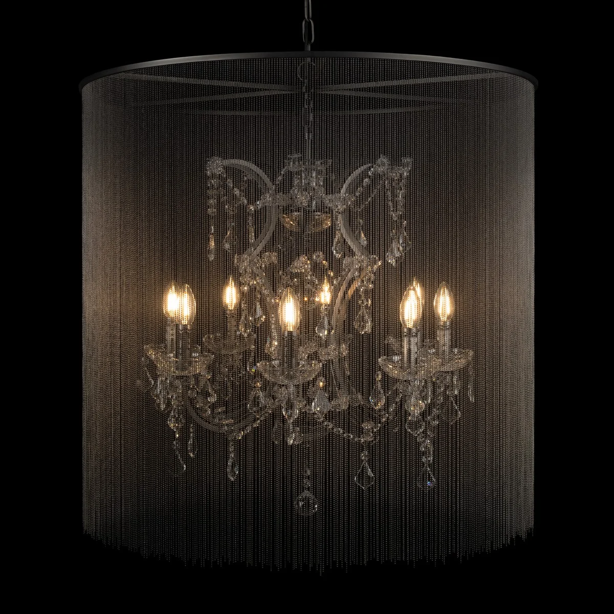 Коллекция светильников Vaille Crystal поражает своей изысканностью и загадочностью. Она словно вдохновлена женскими головными уборами стиля ар-деко, украшенными пайетками, бисером и бахромой. Эти светильники, словно скрыты под вуалью из металлических бусин, а их композиции из сверкающего хрусталя и изящно изогнутого металла создают впечатление волшебства.