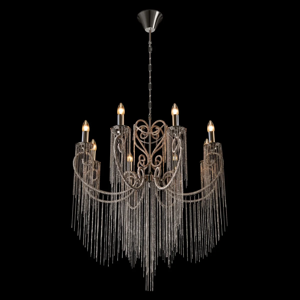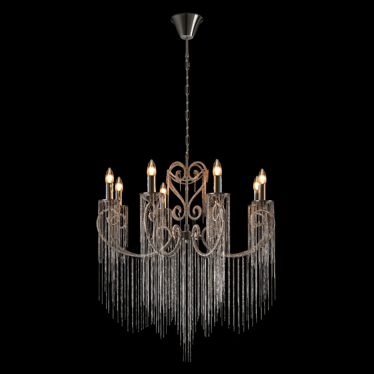 Подвесная люстра Wonderland 10405/8 из коллекции Wonderland LOFT IT — это изысканный образец арт-деко светильников, воплощающий баланс между современным искусством и технологией. Металлическая арматура цвета никель придает изделию элегантную строгость, а многослойные металлические цепочки создают эффект водопада, даря интерьеру неповторимую легкость. С общей мощностью 320 Вт люстра обеспечивает освещение до 16 квадратных метров — оптимальное решение для гостиной или просторной столовой.