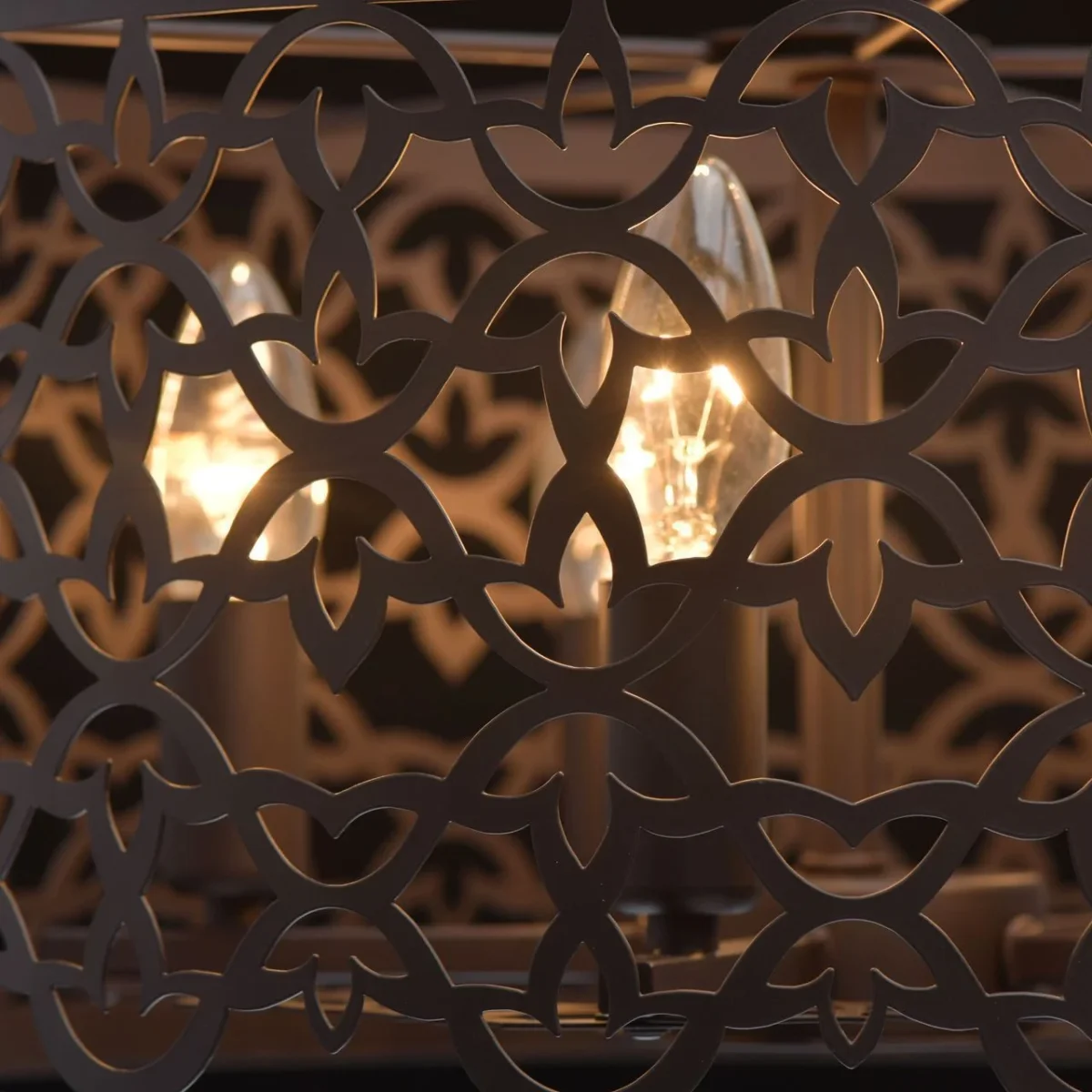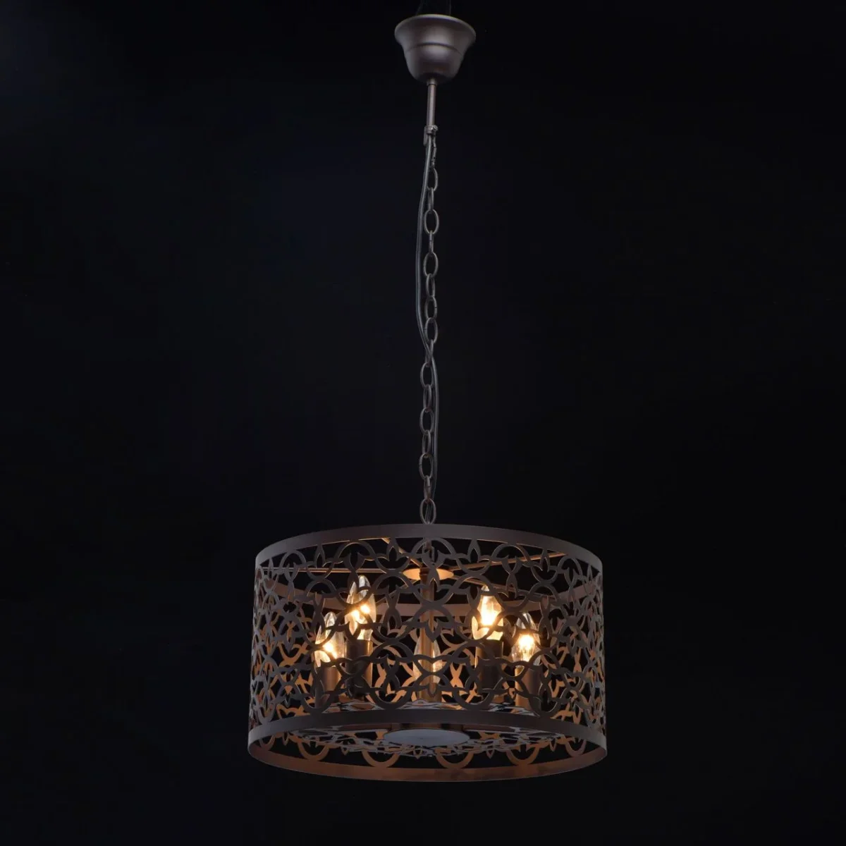 Металлический плафон с ажурным орнаментом добавляет ценности светильнику. Увеличенная длина цепи до 2 м удобна для потолков различной высоты. Трендовый кофейный оттенок. Полная семья под задачи общего и зонального освещения. Традиционные источники света удобны в замене и использовании.