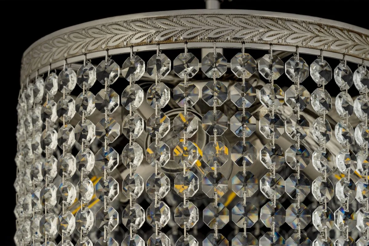 Светильник идеально впишется в интерьер гостиной или столовой, добавив нотку роскоши и утонченности. Его классический стиль гармонично сочетается с натяжными потолками, подчеркивая их гладкость и элегантность. Высота люстры без учета цепи составляет 230 мм, а диаметр – 240 мм, что делает ее идеальным выбором для комнат среднего размера.